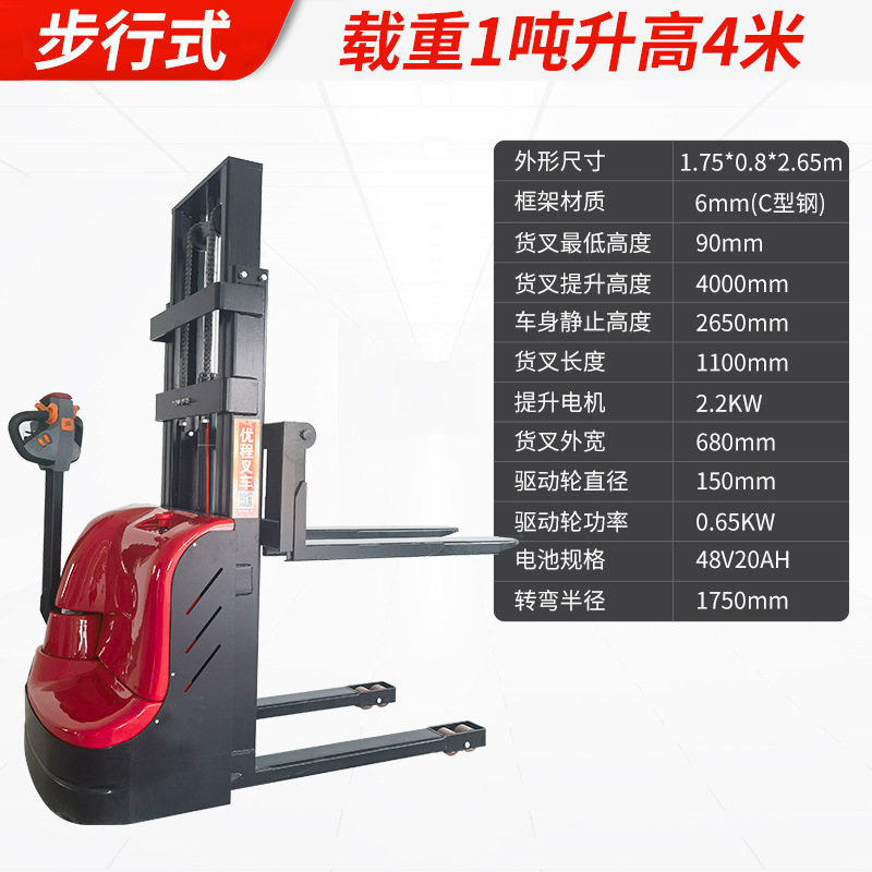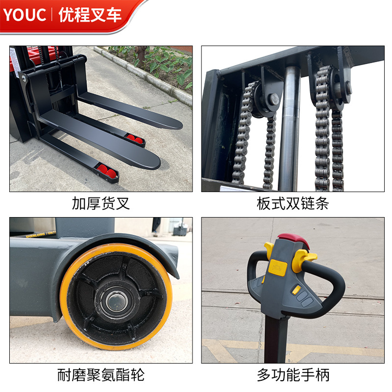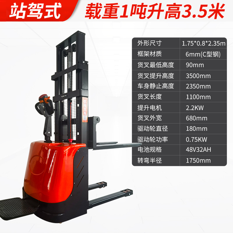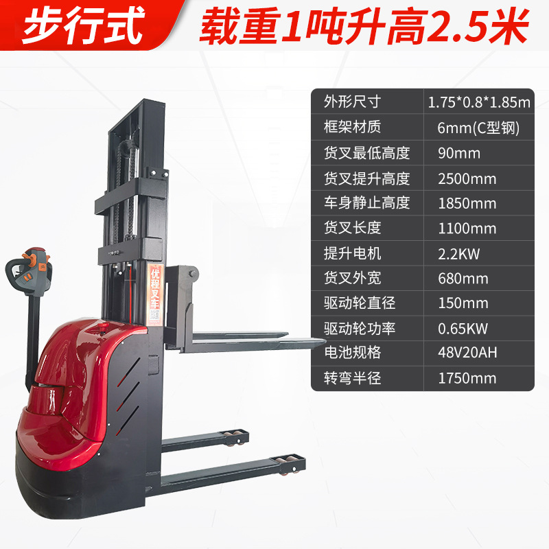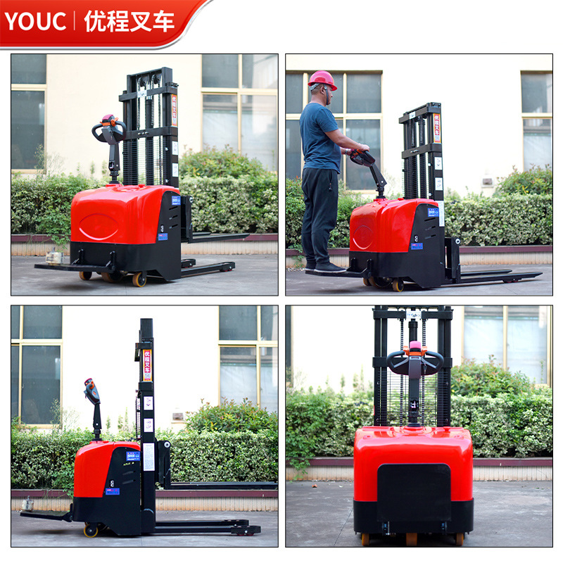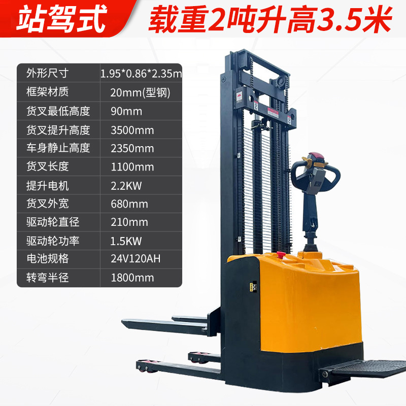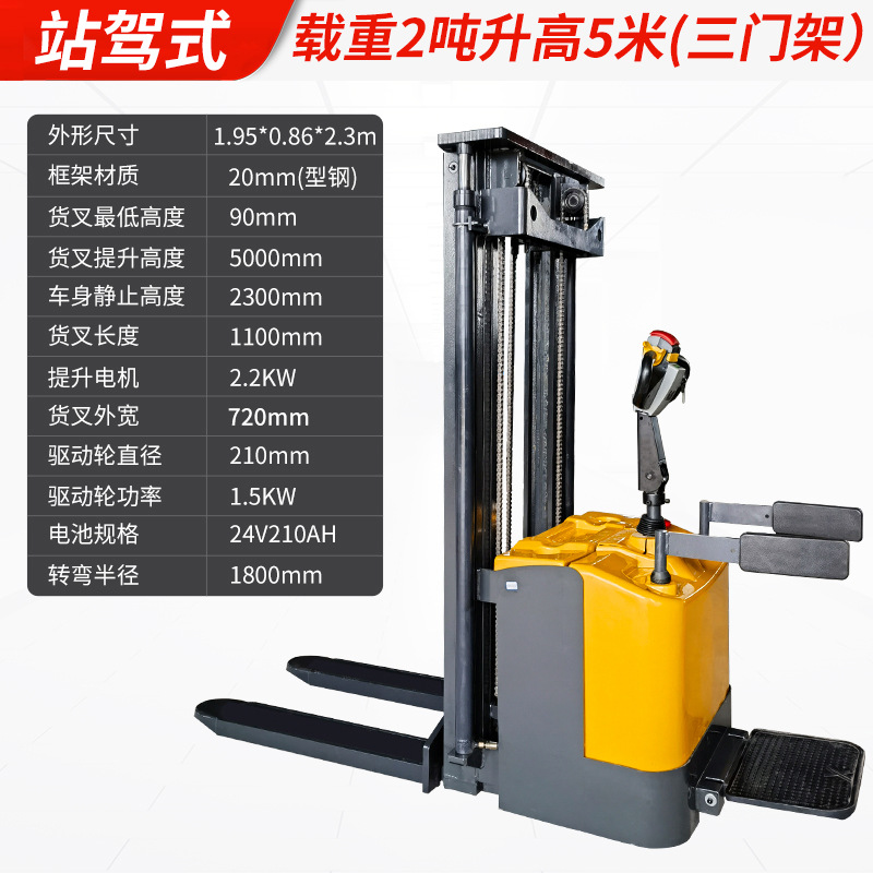 Электрический штабелер грузоподъемностью 1,5 тонны, полностью электрический, с гидравлическим подъемом, для погрузки и разгрузки, с двумя аккумуляторами.