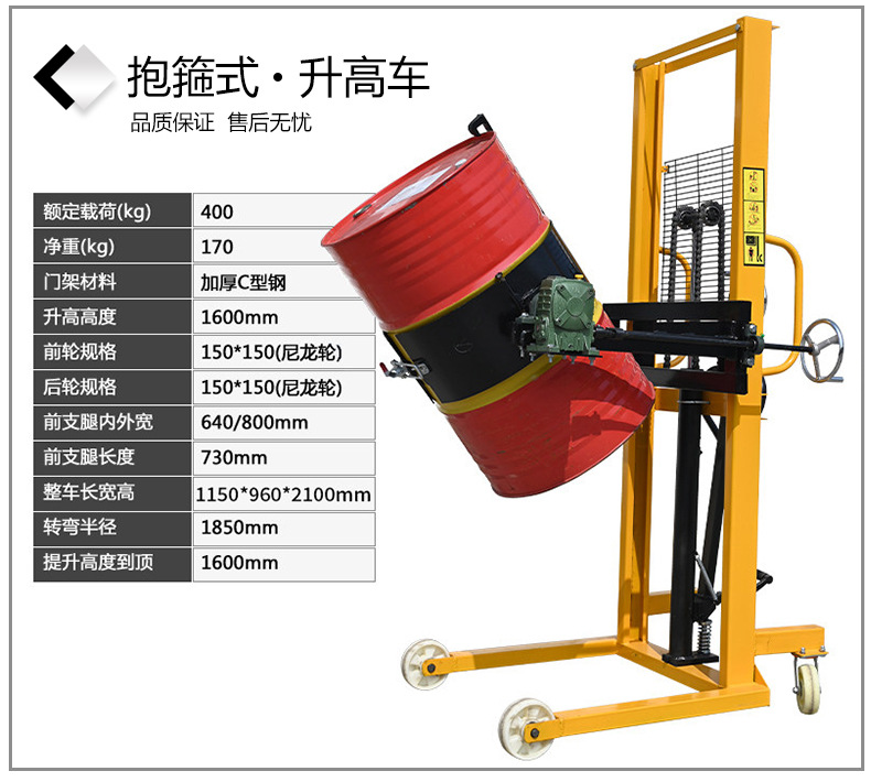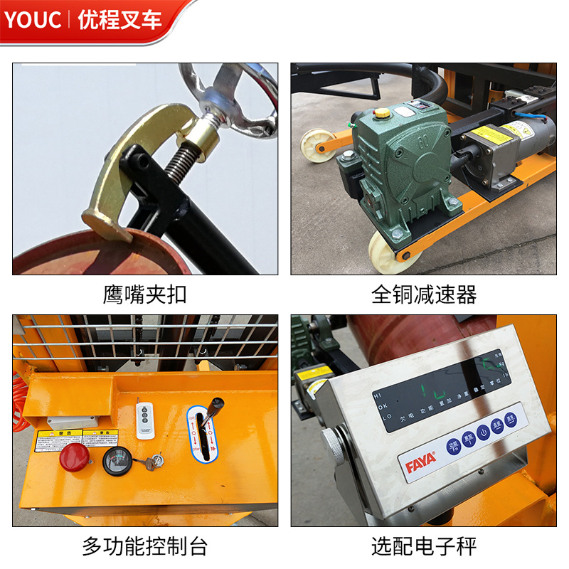 Вилочный погрузчик Youcheng Нефтяная бочка Подъемная зарядка Грузовик Баррель Погрузочный грузовик Железная бочка Пластиковая бочка Погрузочный погрузчик Гидравлический вилочный погрузчик