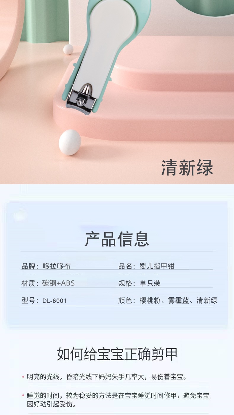 哆拉哆布婴儿指甲剪宝宝指甲钳防夹肉指甲刀 婴儿用品指甲刀6001