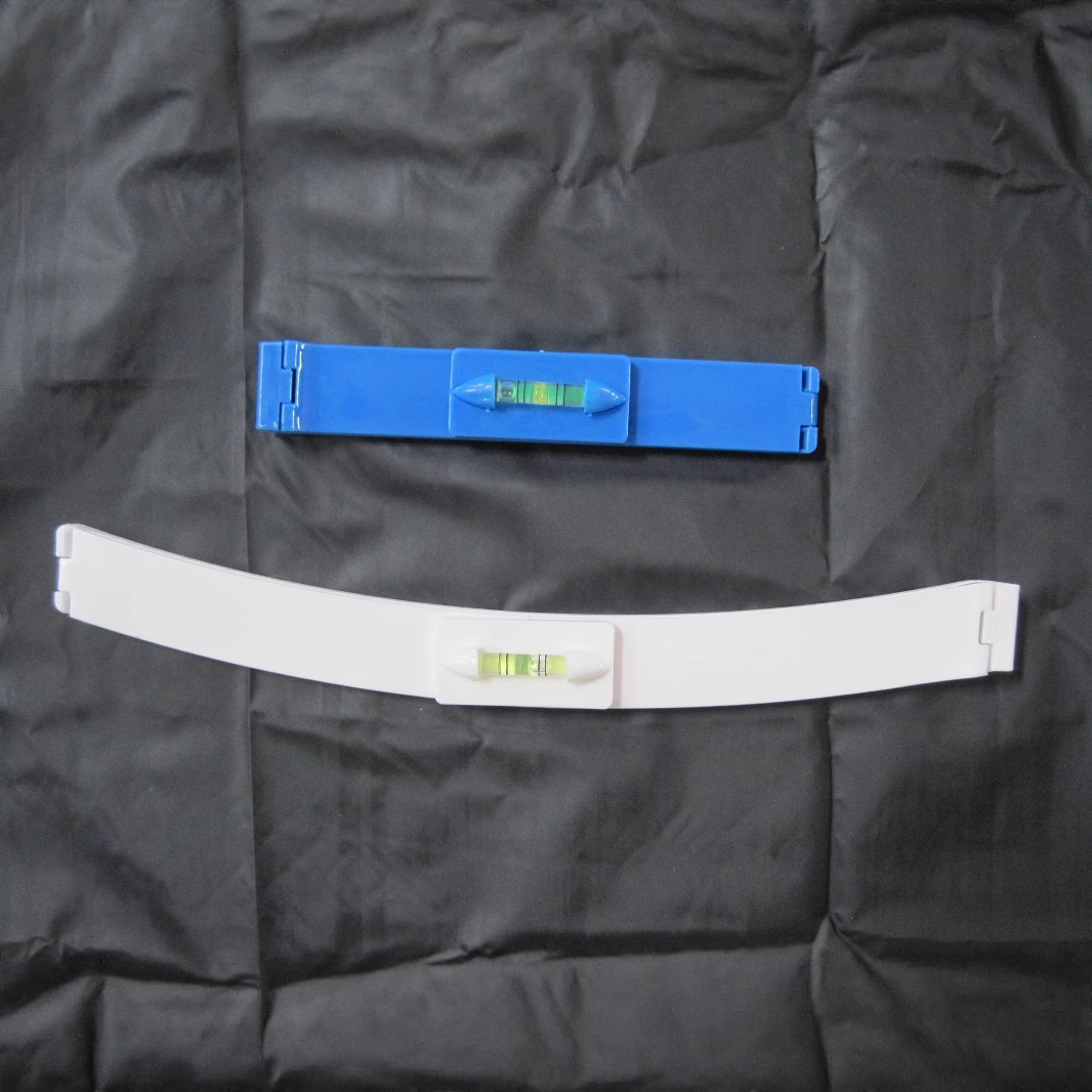 2,调整水平尺,使透明液标中的气泡处于中间位置
