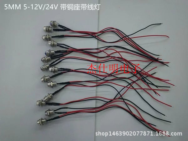 Светодиод с медным сиденьем 5 мм с проволочной лампой, яркий красный/желтый/синий/зеленый/белый/теплый белый/оранжевый/розовый/фиолетовый Световой индикатор