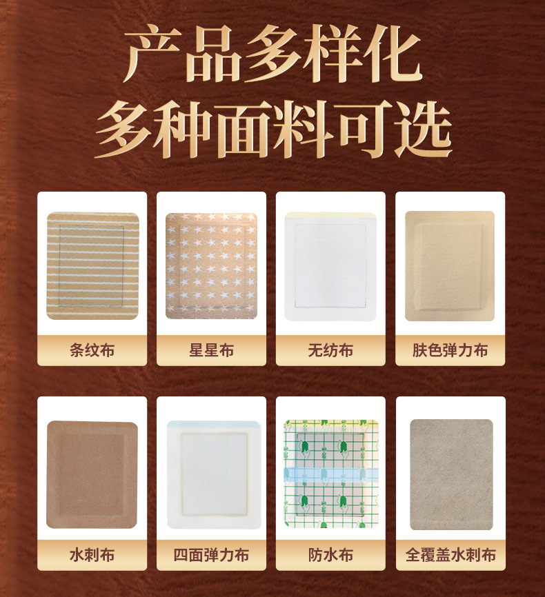 Полосатая ткань [рекомендовано директором фабрики]; нетканый материал; ткань с водяными шипами; Звездная ткань с медовым узором; эластичная ткань; Секретная нашивка из спанлейсовой ткани; Горячая прокатная ткань; Двойное ядро; Водонепроницаемая наклейка из полиуретановой пленки