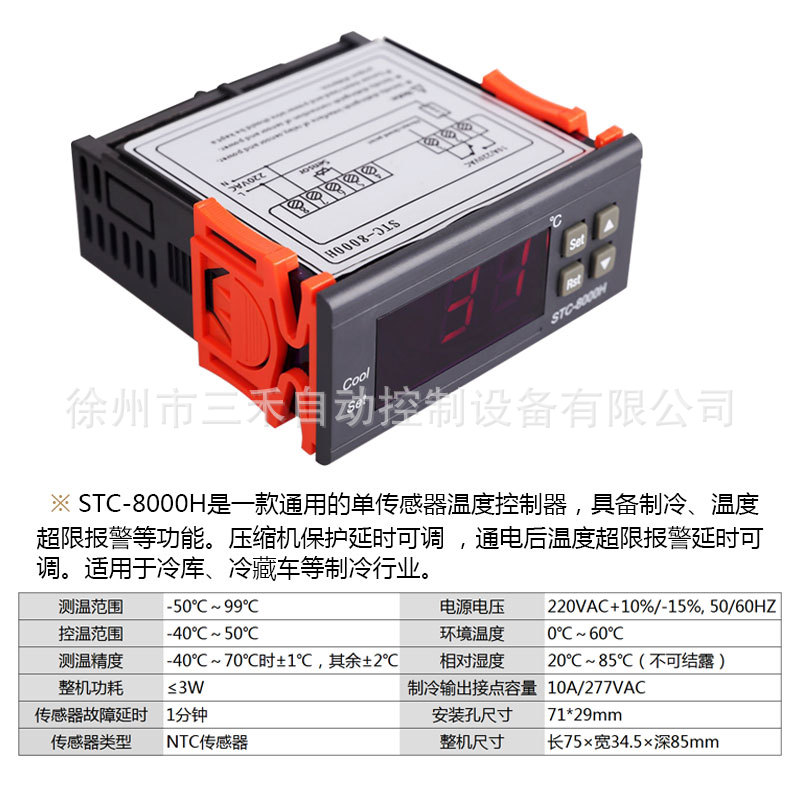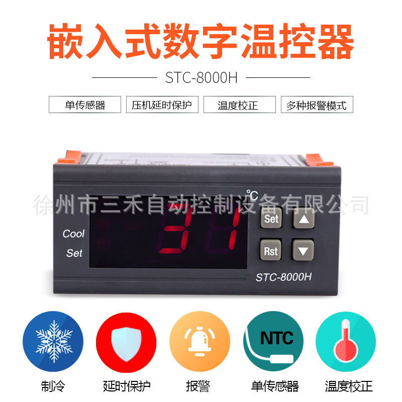 Контроллер температуры Xuzhou Sanhe STC-8000H с функцией коррекции задержки охлаждения, подходит для холодильных камер и морозильников, особенно для использования в холодильных установках.