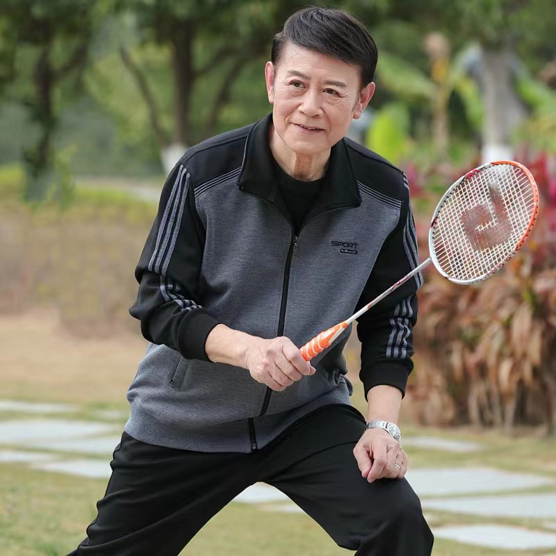 Спортивный костюм для среднего и пожилого возраста, мужской беговой костюм из двух частей, повседневный впитывающий пот дышащий костюм для папы с длинными рукавами