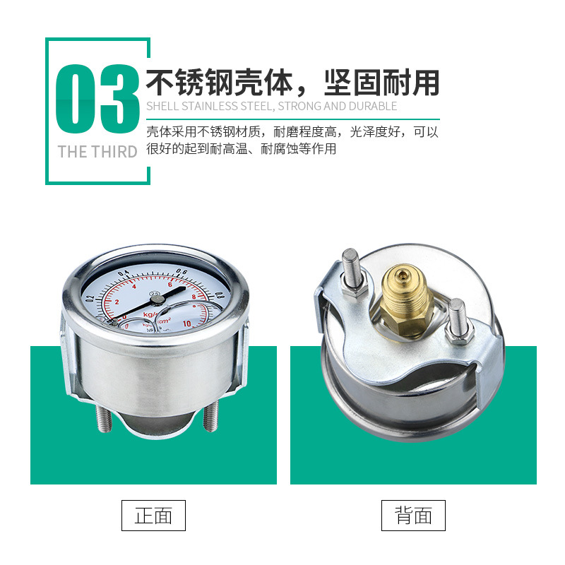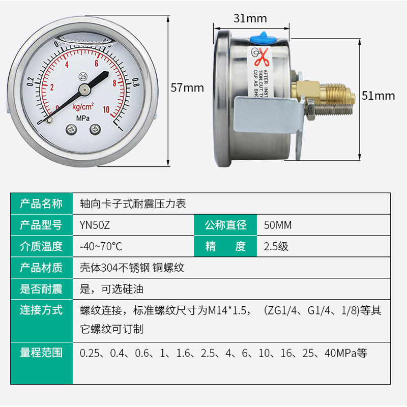 Сейсмостойкий манометр осевой YN50ZK, крепление на панель, с комплектующими для измерения давления масла, воды и воздуха.