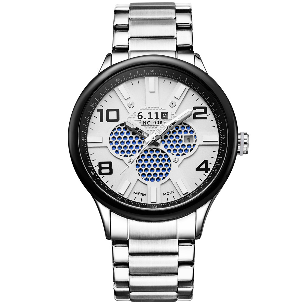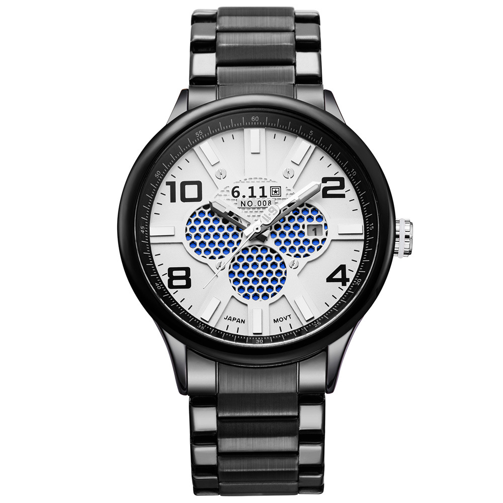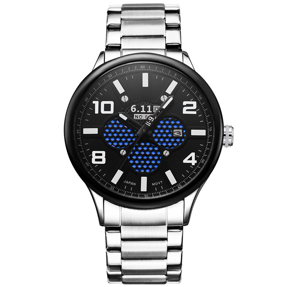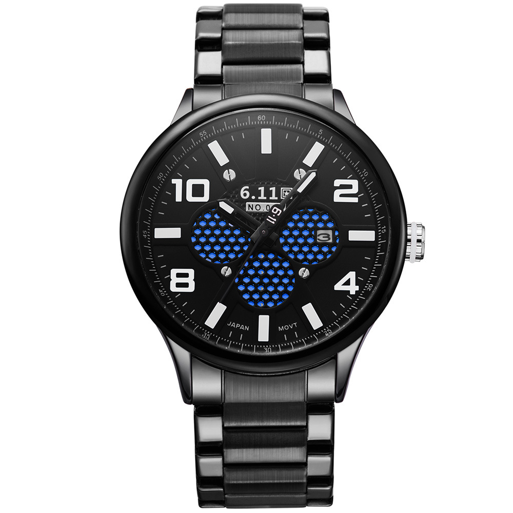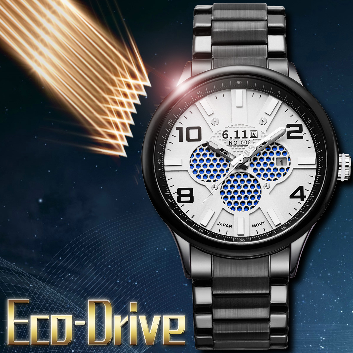 三眼NO-008光波日历光电手表光能手表 男士钢带手表