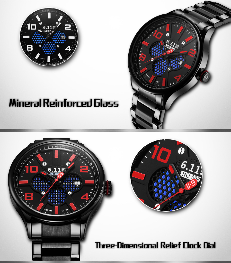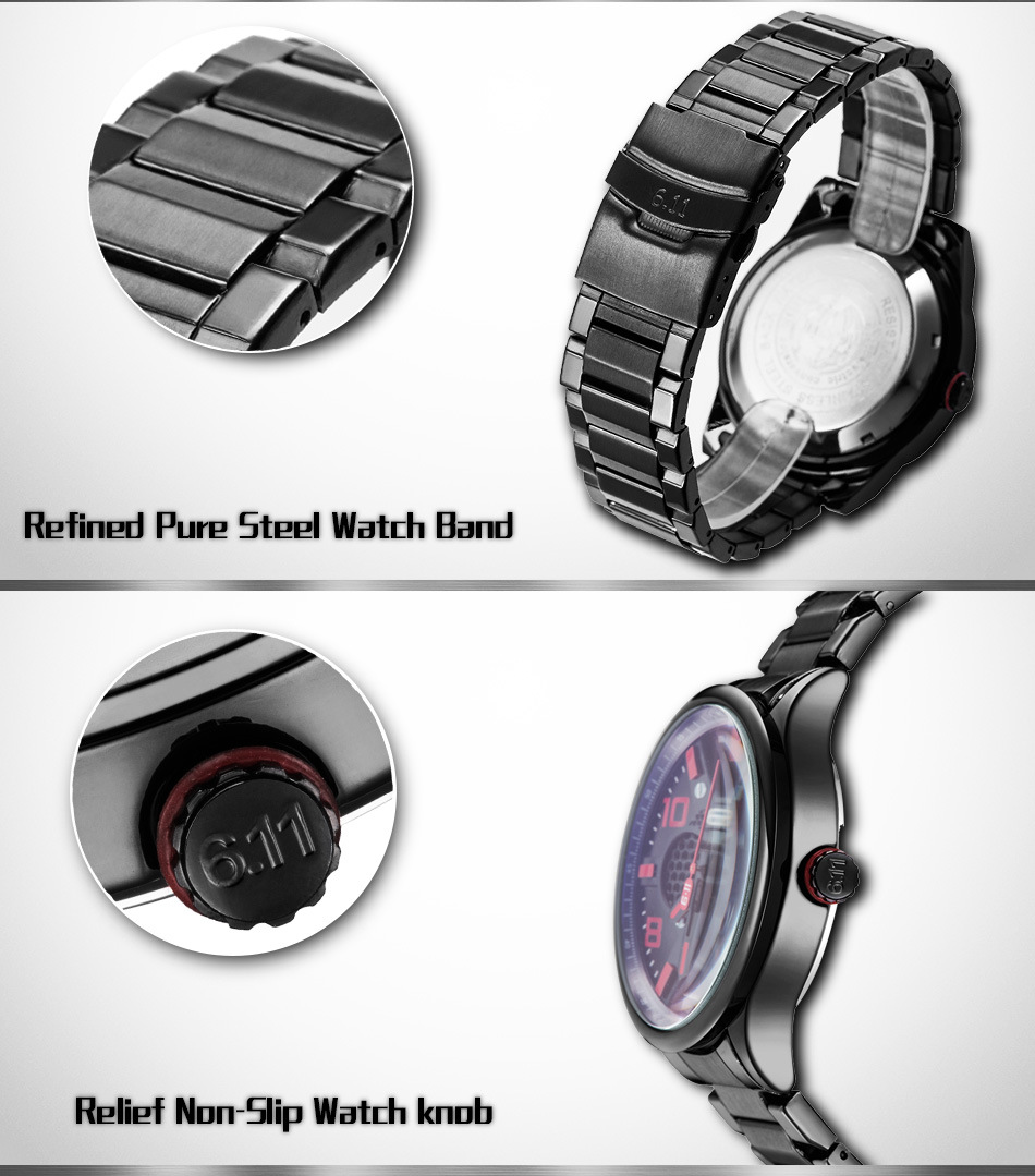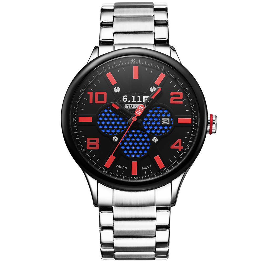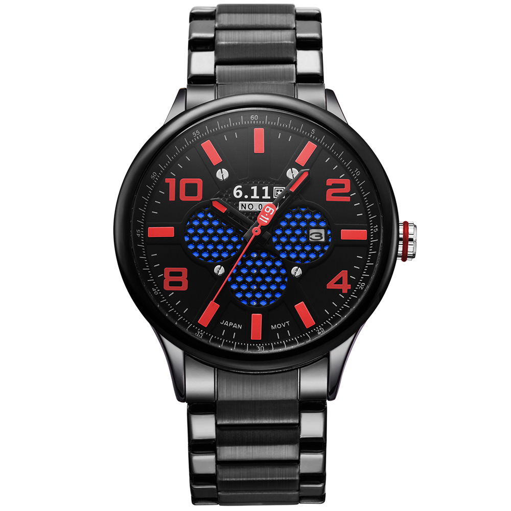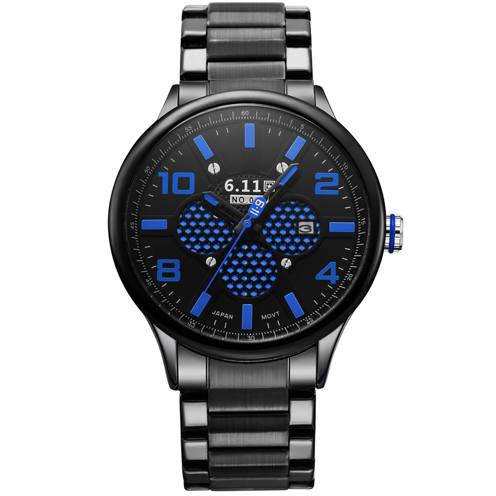 三眼NO-008光波日历光电手表光能手表 男士钢带手表