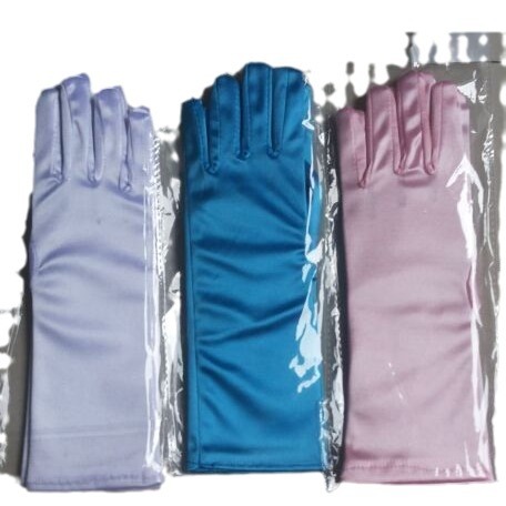 В наличии у производителя синие перчатки для детских причастных нарядов, декоративные перчатки, розовые перчатки для платьев принцесс, перчатки для танцевальных костюмов.