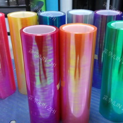 变色龙灯膜所采用面料是一种具有创新光学效果的高科技特殊面料。成膜后的色彩会根据观察角度的不同而产生三维色彩变幻效果,且不含重金属物质。并能与其他颜料燃料拼用而产生诱人的色彩效果。变色龙灯膜采用了进口超薄的高分子聚合的聚氢乙烯及进口压敏油性胶。色泽鲜艳、完美透光、耐腐蚀、牢固耐用,拥有更强的耐热性,韧性和延展性。
