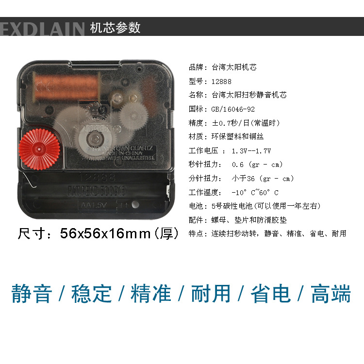 Оригинальные товары Taiwan Sun бренд движение 12888 Бесшумная развертка вторая точность вал кварцевые настенные часы движение часы аксессуары