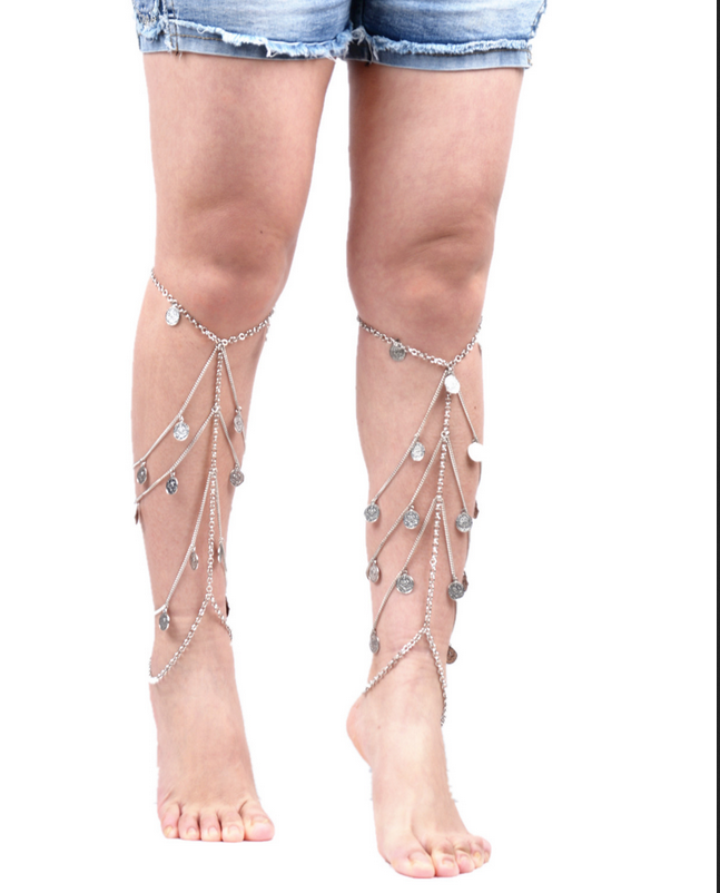 Европейская и американская внешняя торговля Ювелирная мода минималистский Европейский и американский стиль панк преувеличенная личность многослойная монета кисточка цепочка для ног украшения для ног