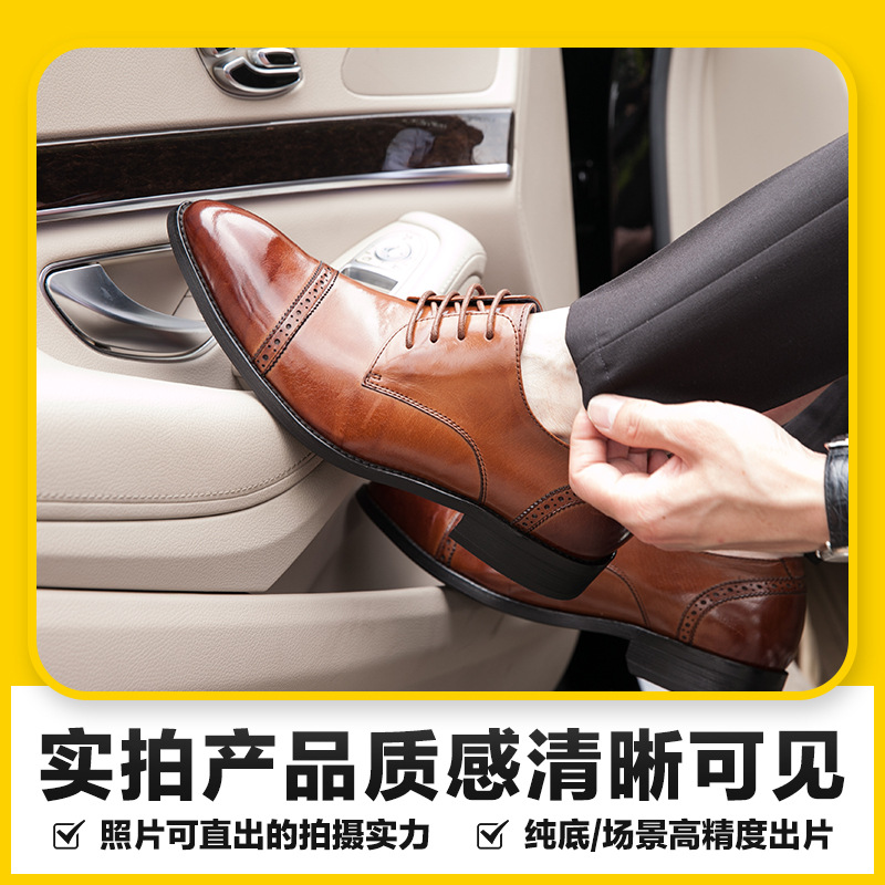 Фотосъемка мужской кожаной обуви, услуги фотопродукции, белый фон Amazon, дизайн для трансграничной электронной коммерции, модель на улице