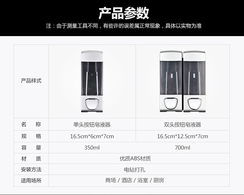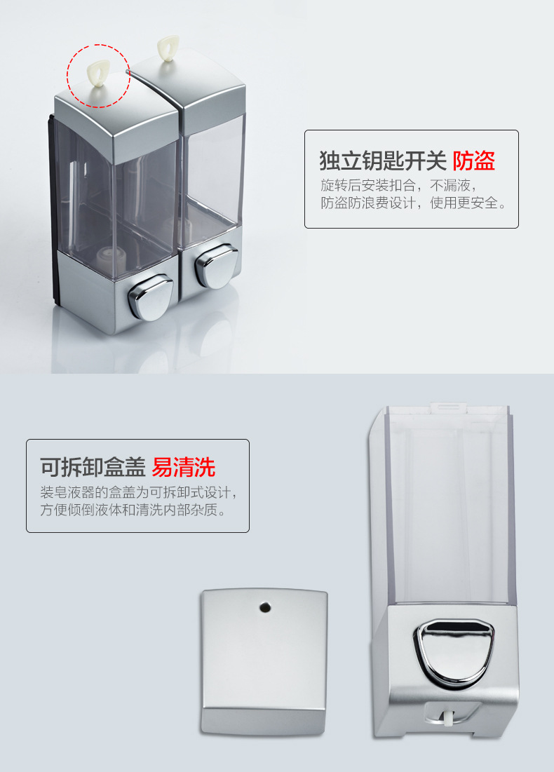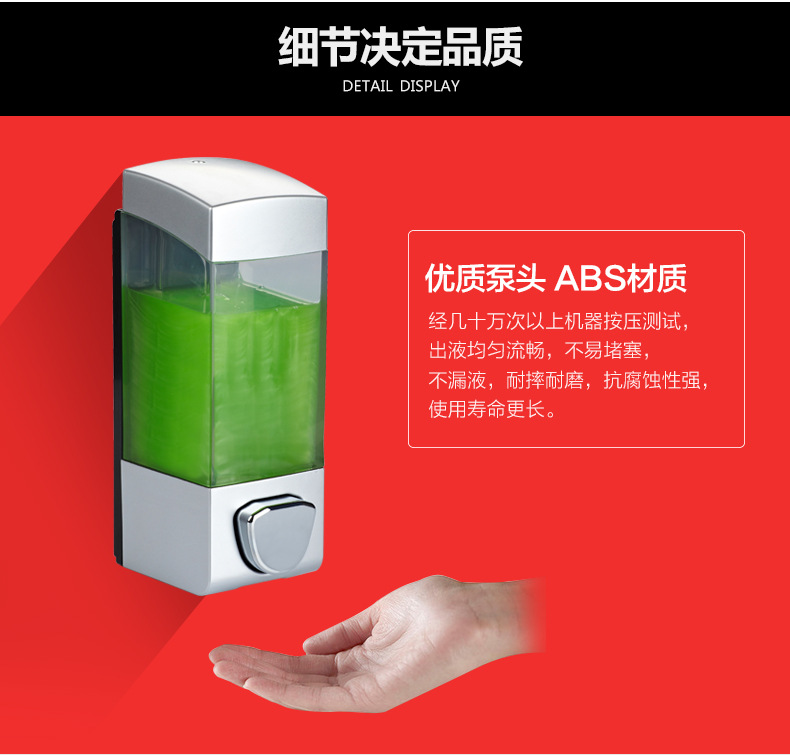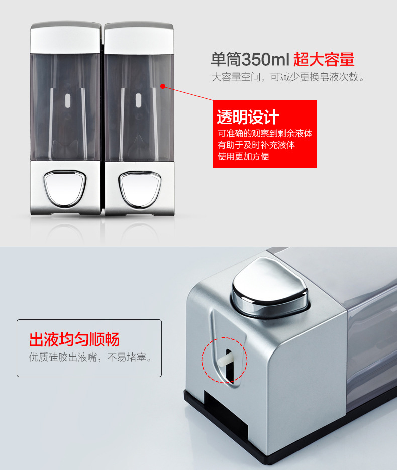 ◆用途:用于酒店、宾馆、家庭等洗手间、淋浴房内安装使用,可装洗手液、沐浴露、洗发液、洗洁精等液体。