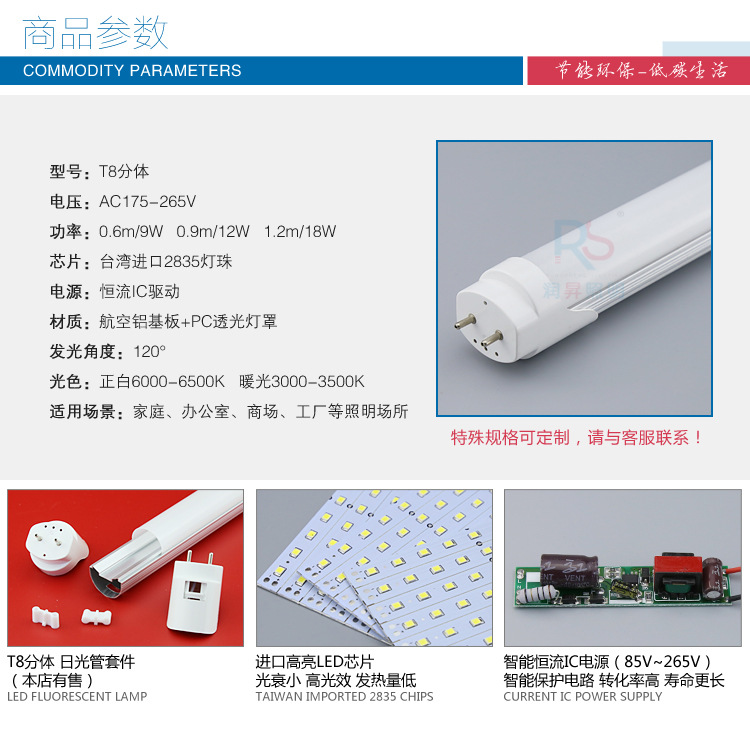 1、节能省电:高光效led日光管 在保证亮度的同时,相比传统白炽灯节能90%以上 |