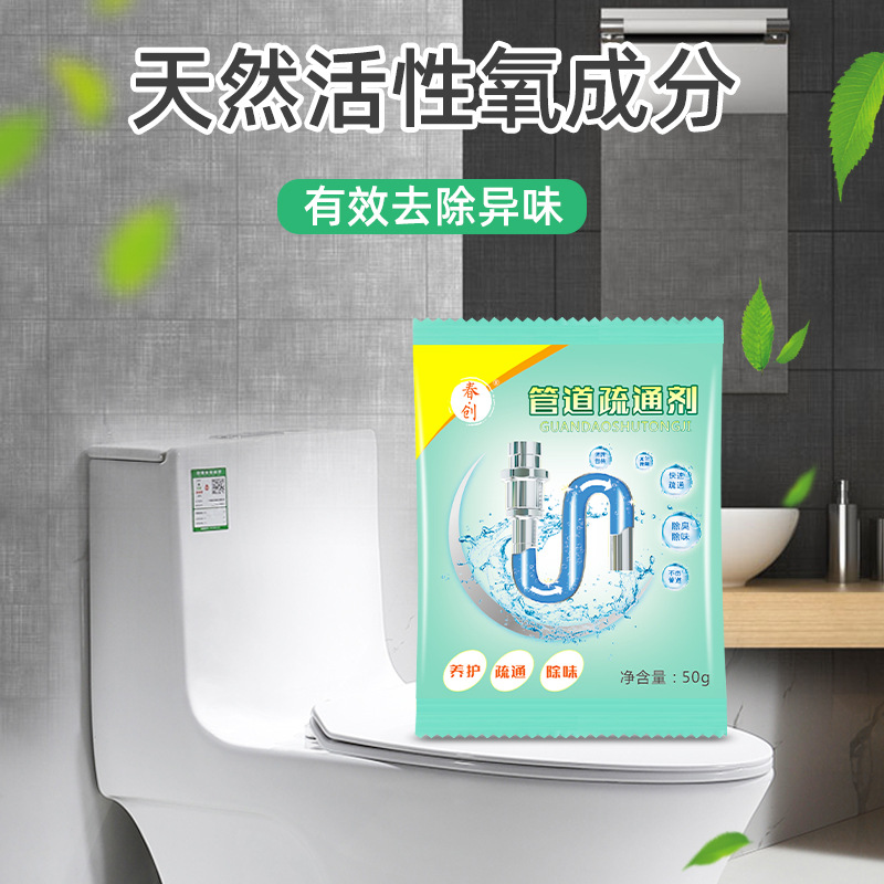 Средство для прочистки труб 50 г для бытовых канализационных труб в кухне и ванной, устранитель засоров и дезодорант для унитазов и раковин.
