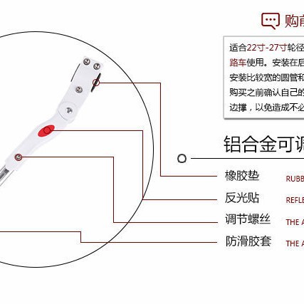 ●长短可调,通用车型:24"-700C.部分折叠车,16"-20"车同样可使用,需要裁短下支撑杆.(参考附图)
