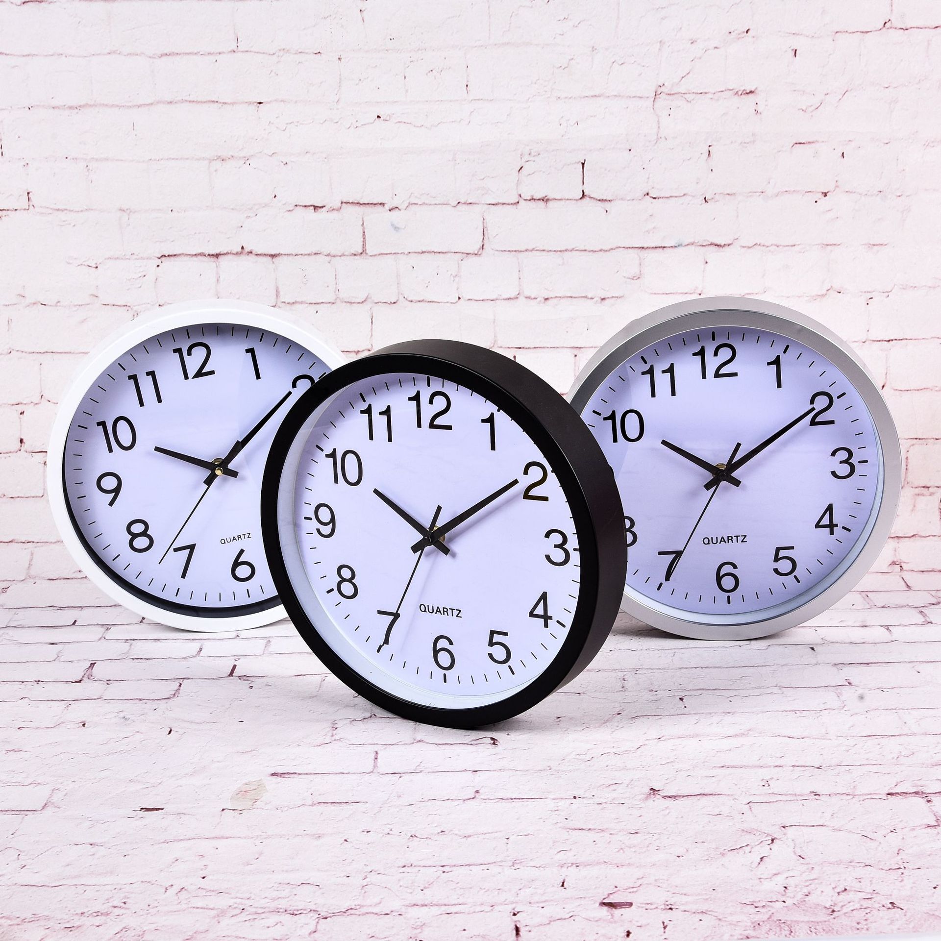 Подходит для офиса, дома и гостиной, 10inch пластиковых настенных часов с однотонной рамкой, круглые, бесшумные, с возможностью нанесения различных логотипов.