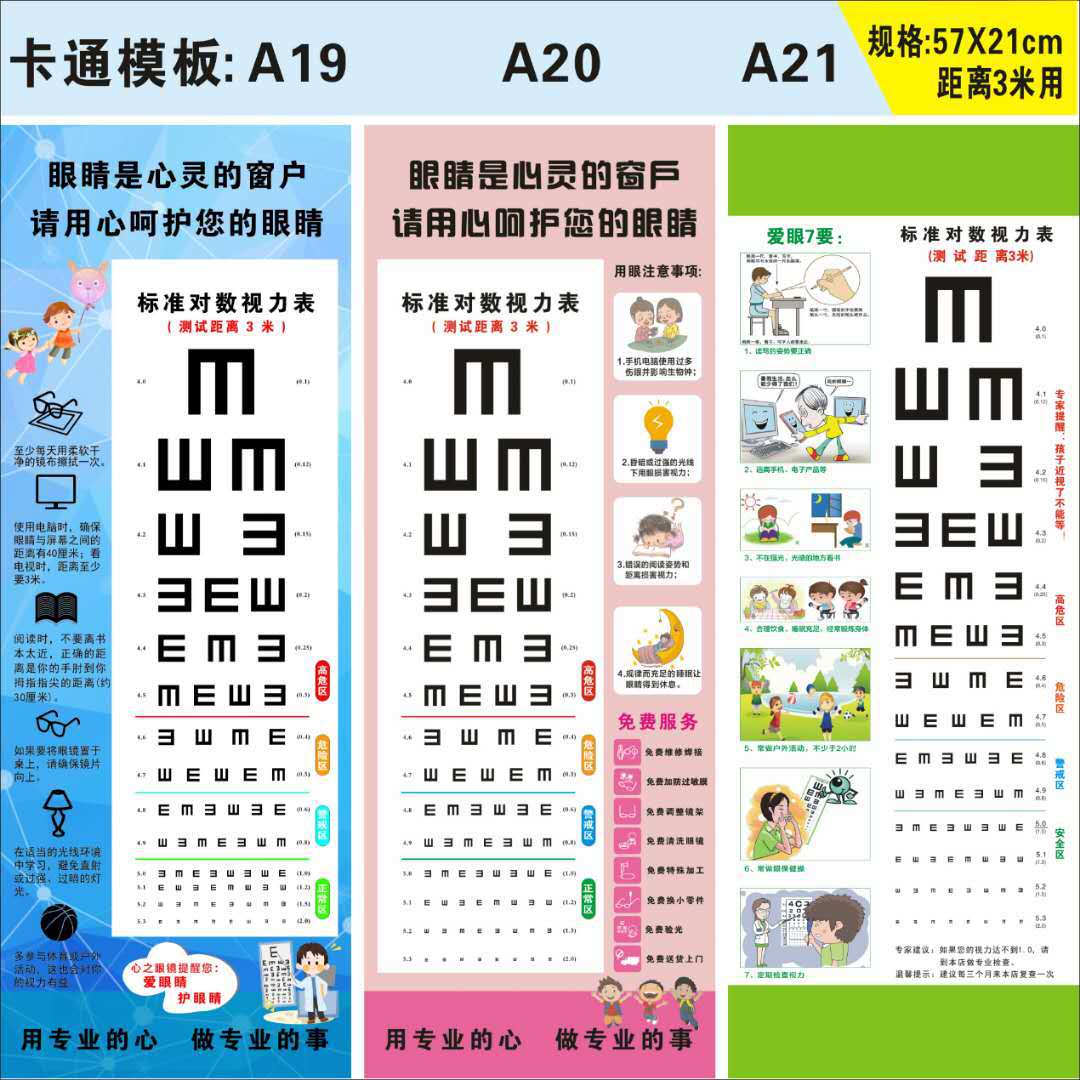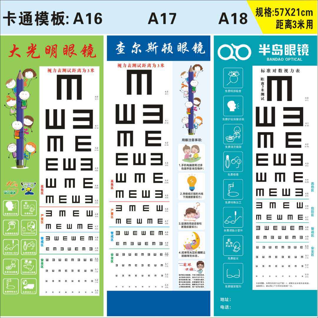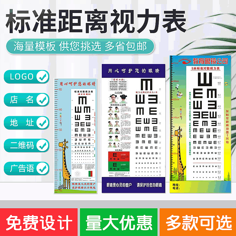 Настенная диаграмма зрения Стандартная домашняя логарифмовая визуальная таблица может быть напечатана с логотипом Универсальный мультфильм утолщение визуальная таблица оптом