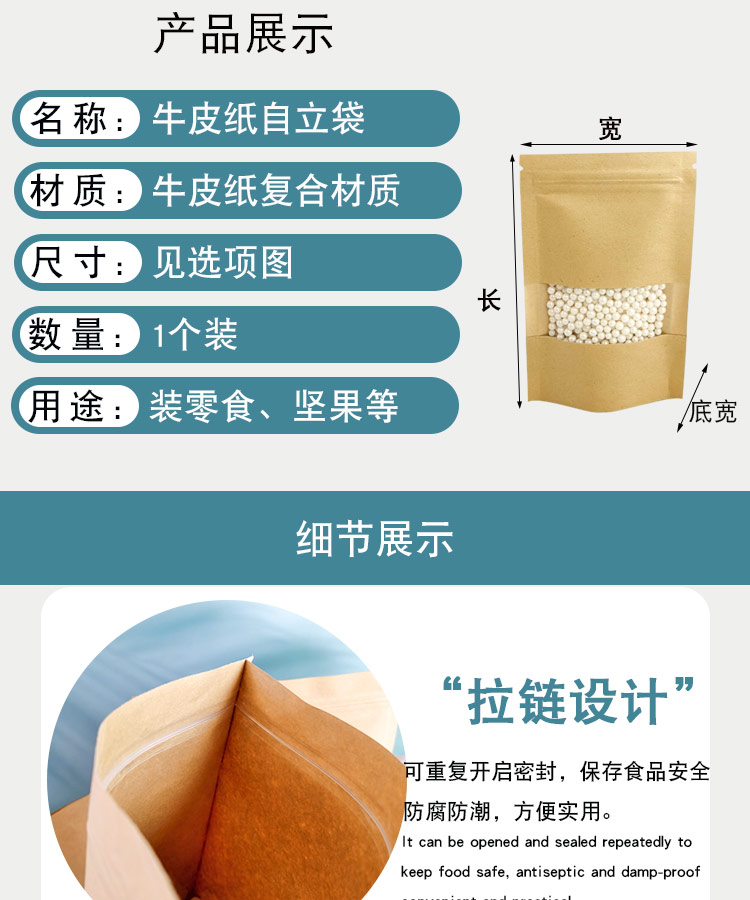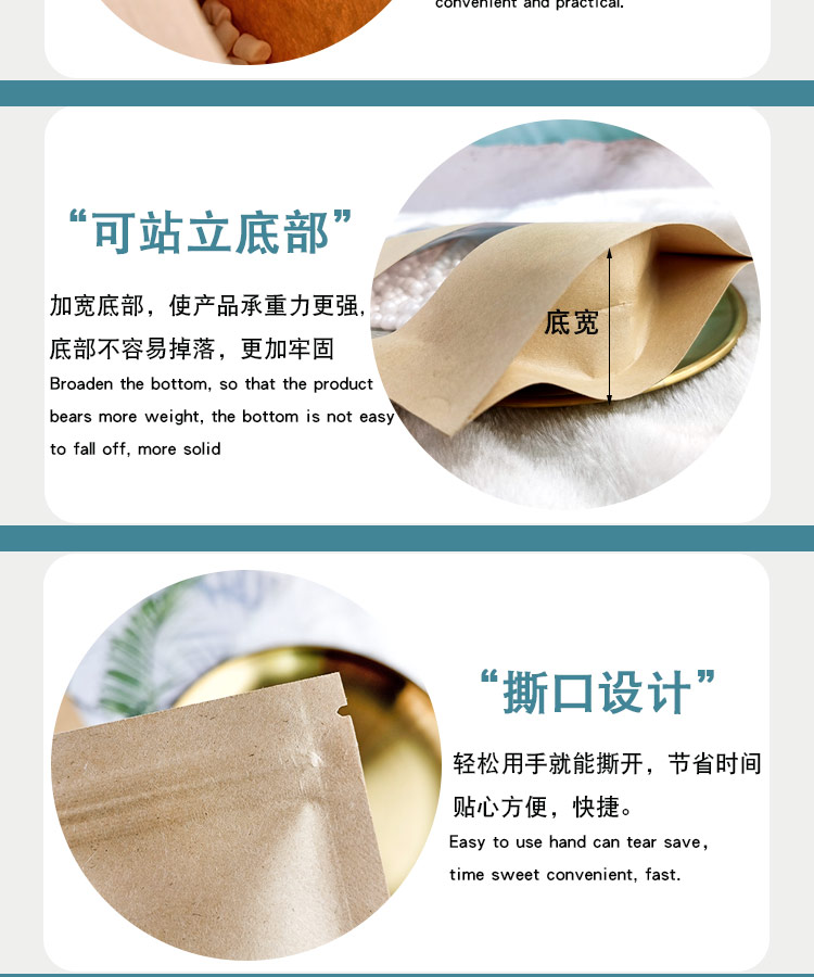 Сумка запечатывания сумки запечатывания чая сумки упаковки еды бумажного мешка Крафт окна Высоко-определения само-поддерживая пластиковая