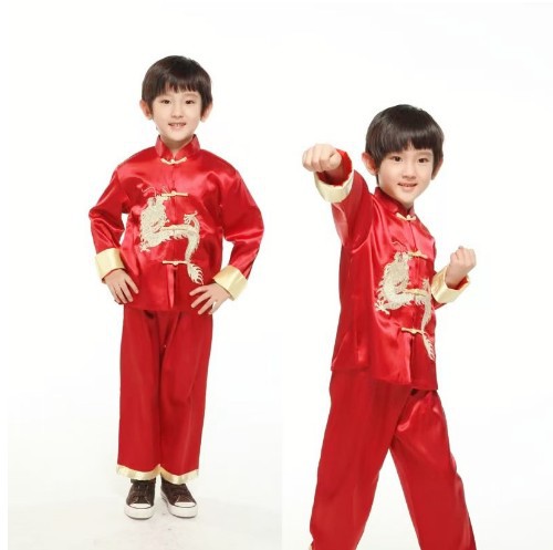 Поколение весенне-осенней детской одежды костюм Тан для мальчиков пальто с длинными рукавами костюм кунг-фу одежда для выступлений маленький дракон Красный