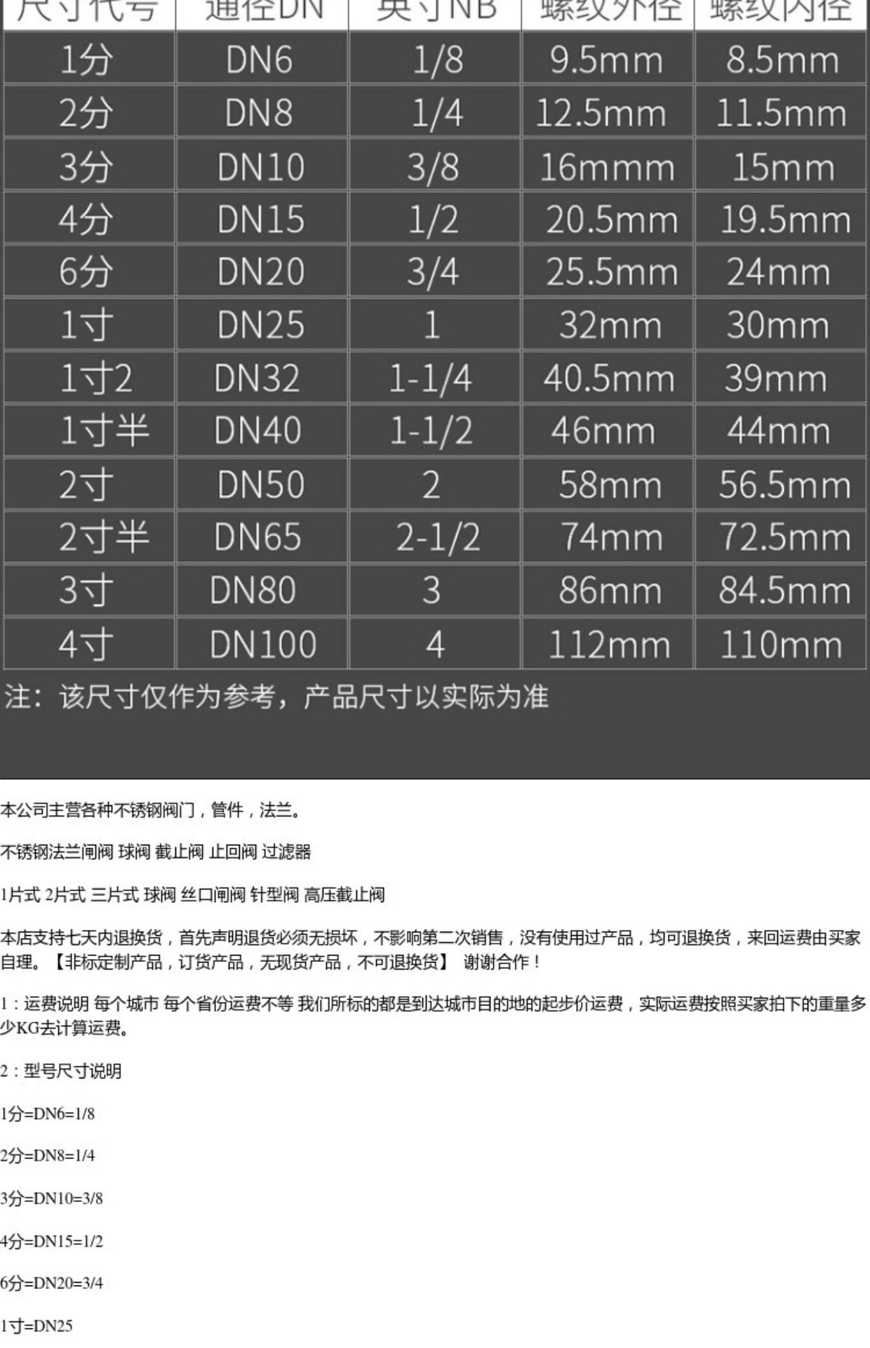 三、管道配件:离心泵、乳化泵、自吸泵、管道过滤器、不锈钢蝶阀、球阀、隔膜阀、流量调节阀、气动换向阀、三通、弯头、变径接头、活接头、快装接头、卡箍、密 不锈钢内丝口弯头,耐用等特点,只要用配套轻便的专用工具夹住快接管件加力即可将管材拔出拆除,利用专用卡压工具将不锈钢管卡死在管件内, 卡压式管件的工作原理是将薄壁不锈钢管插入卡压式管件的承口,使得安装和使用都更加便捷,材料不锈钢管,螺纹的长度也是如此, 对接焊接不锈钢管件是将不锈钢管和管件对口沿对缝做一圈氩弧焊接的管件,材料不锈钢管,是所有连接方式中最可靠的连接方式,304不锈钢单头丝、316单头丝,单边丝SUS316四通316六角水管接头SUS316变径三通 管件承口外径=管材外径,主要不锈钢材质:304、304L、316|、316L路连接工件的统称,其卡压处截面形状为六角形 封件等!