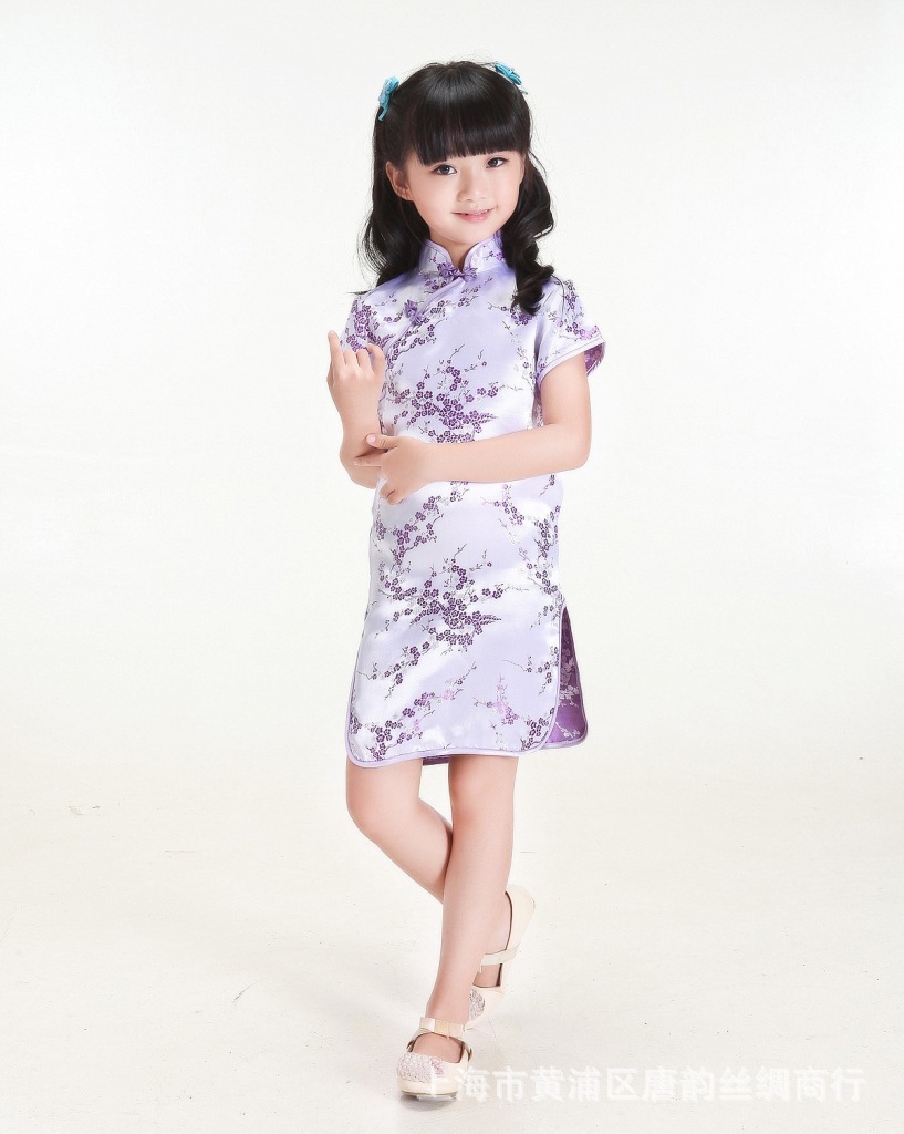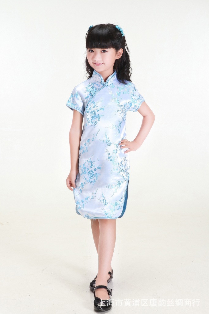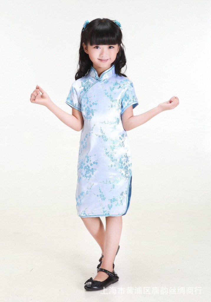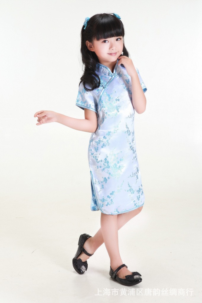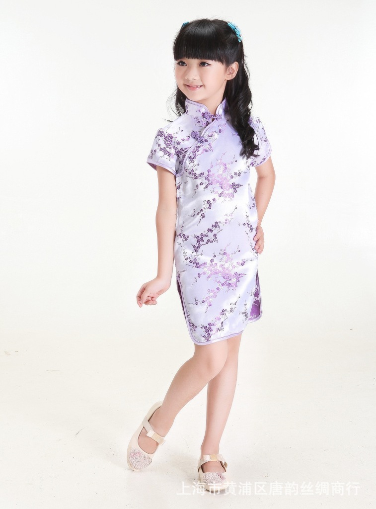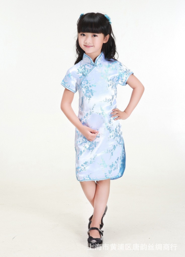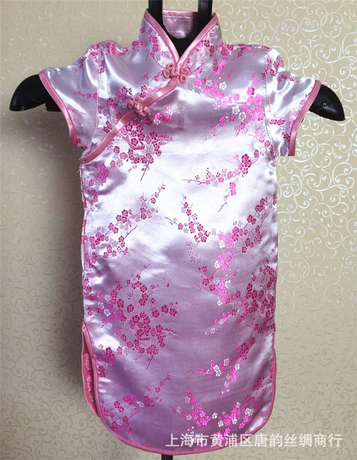 Экспорт в Сингапур Хороший материал плетение парчи Цветение сливы Детский костюм Тан Cheongsam Одежда для девочек Performance Cheongsam Dress