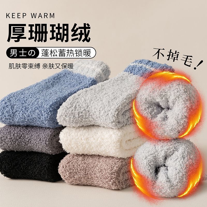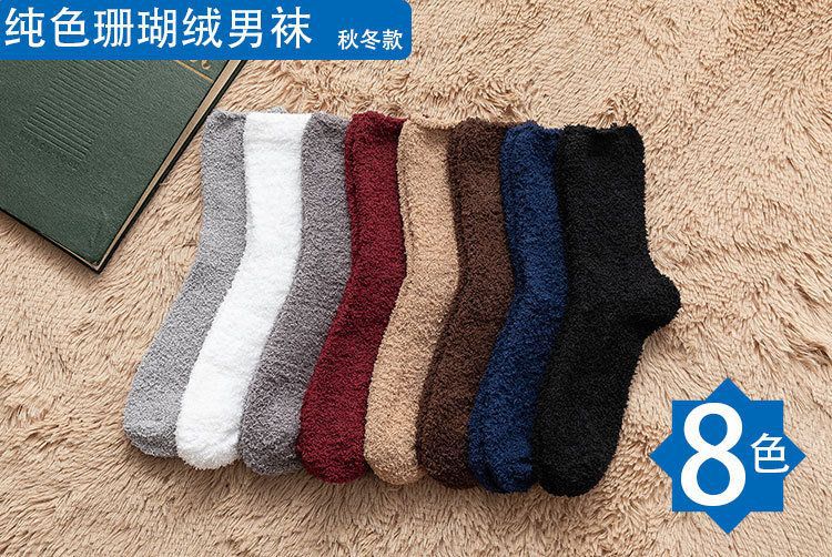 Однотонные мужские носки из полувельвета, свободные домашние носки, носки из кораллового флиса с защитой от запаха, утолщенные для осени и зимы, мужские носки для сна оптом.