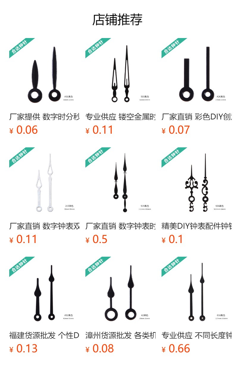 Поставка производителем различных профессиональных аксессуаров для часов, стрелок, кварцевых часовых стрелок (часовой, минутной и секундной), комплектов стрелок для часов оптом.