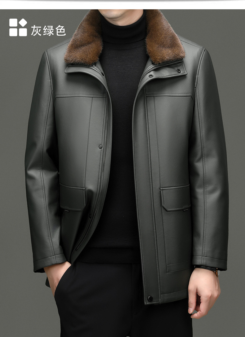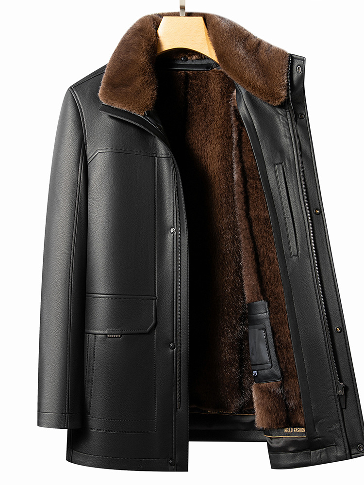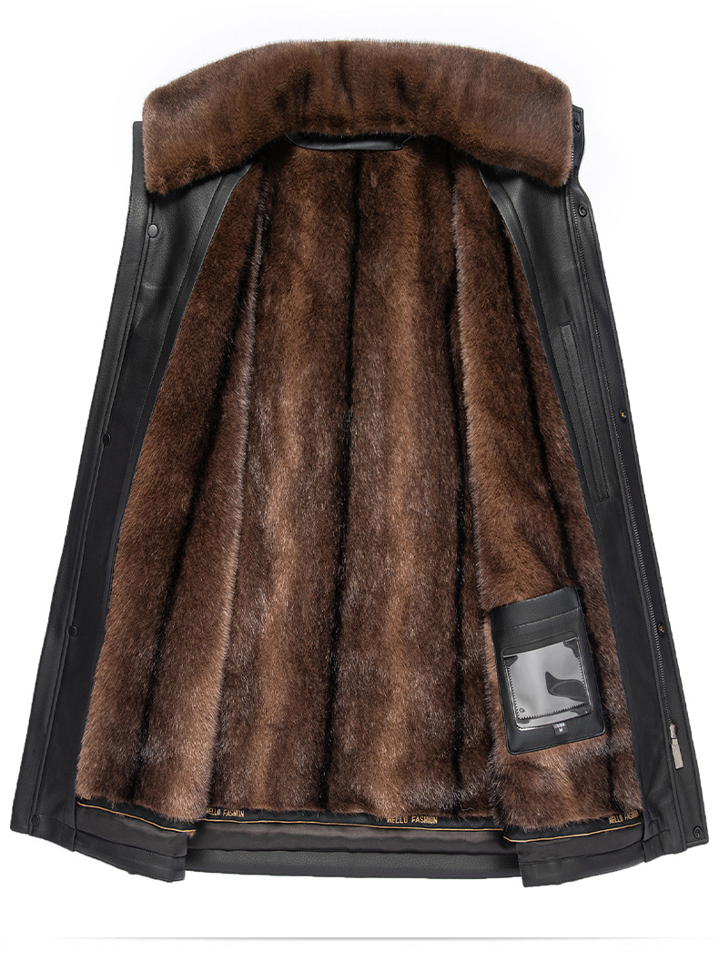 Кожаная куртка Inobani, мужская парка с меховым воротником, съемной подкладкой для мужчин среднего и старшего возраста, зимнее пальто 2398