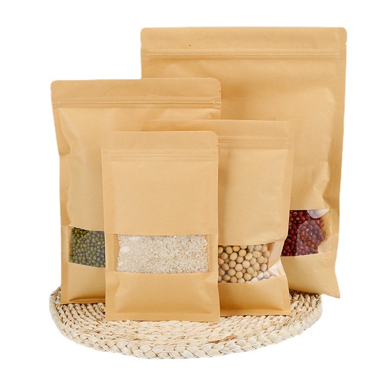 Оптовая продажа пищевых продуктов крафт-бумажный пакет окно плоское дно герметичный пакет самоклеящийся пакет гайка сельскохозяйственные продукты упаковочный пакет плоский пакет