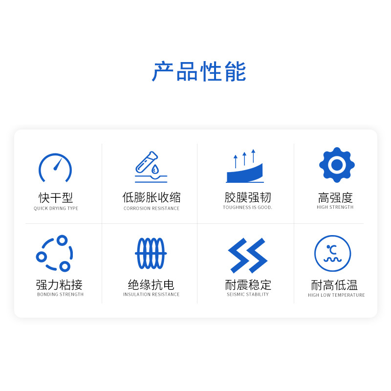 2. 适用于电器、音响等零件之绝缘、防尘、防震的固定粘接,电子零件和机构设计上的填缝与接着。
