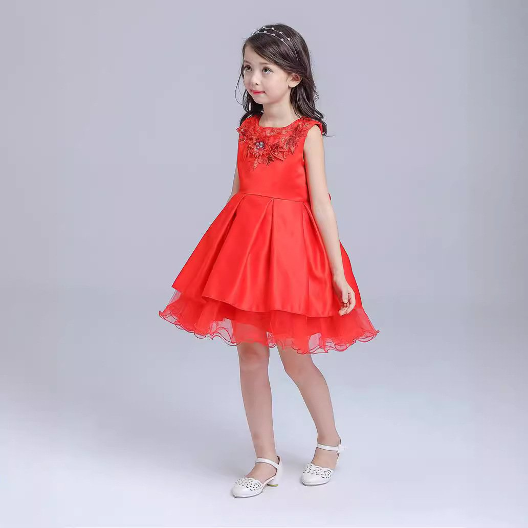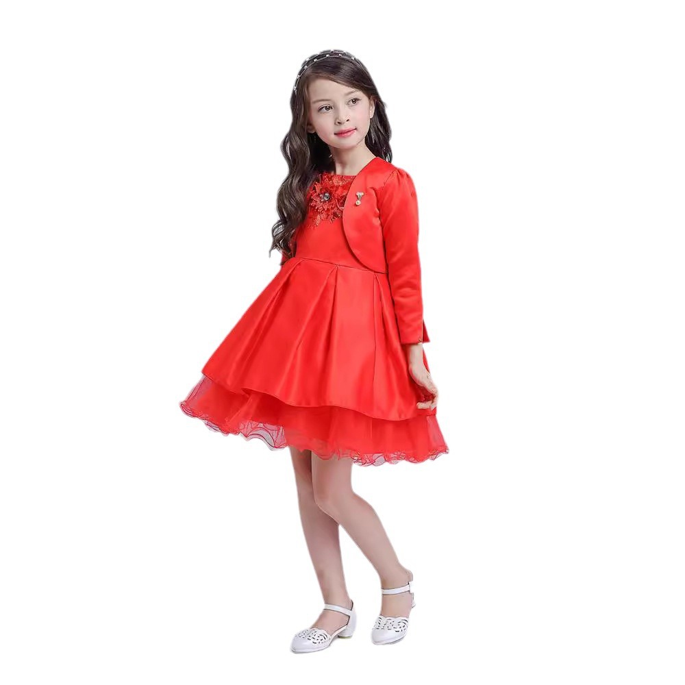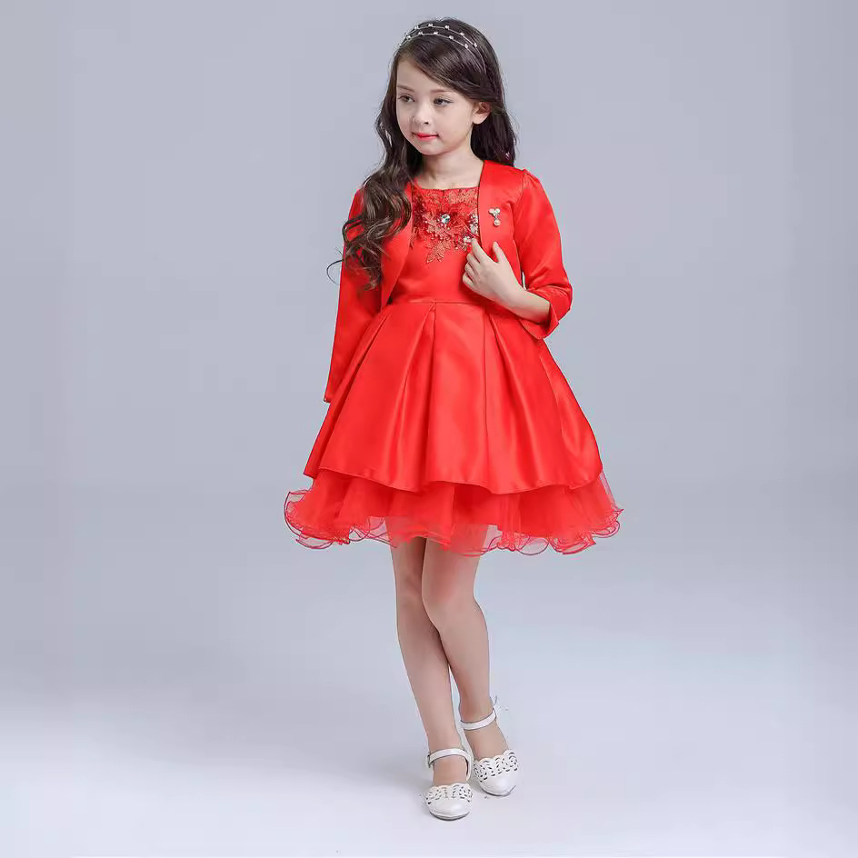 Осенне-зимний большой красный Детский костюм с длинными рукавами, платье для выпускного детского сада, свадебное платье для девочек, пышное платье принцессы