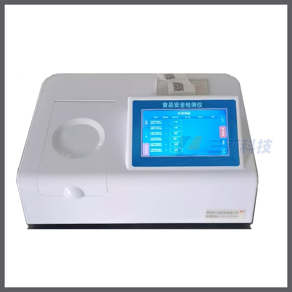多功能食品安全检测仪可快速检测60多项目,包含:滥用食品添加剂、非食用化学物质、农药残留、重金属含量、病害肉成分、营养强化剂、化学类残留、食用油脂检测、水酒饮品分析、调味品成分、食用色素等现场的定性定量检测。