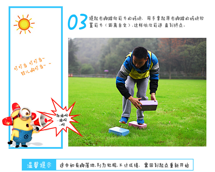 3、每次向前跨不同的脚,不要在砖头上换脚,身体的朝向必须是一左一右,这样速度才会更快。 |