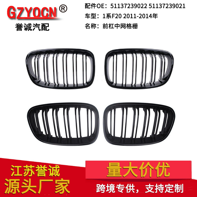 Подходит для BMW 1 серии F20 11-14, тюнинг, черная решетка радиатора с двойной линией, центральная решетка переднего бампера, передняя часть.