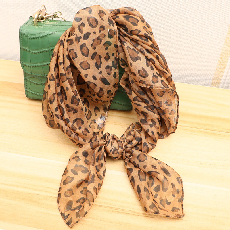 Европейский и американский классический элегантный женский маленький квадратный шарф с леопардовым принтом, весенне-летний тонкий шифоновый шарф, дорожный защитный шарф для шеи, солнцезащитный крем