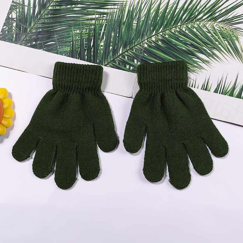 Осенние и зимние акриловые простые теплые вязаные перчатки для мальчиков и девочек, волшебные перчатки с полными пальцами, производители, оптовая продажа, логотип для печати