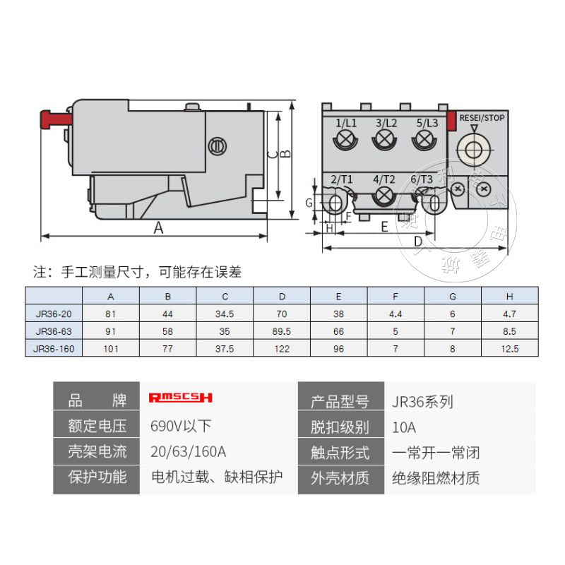 [Фабрика сразу] Реле тепловой перегрузки термального реле JR36-20 спецификации 0.25A ~ 22A качественные продучты