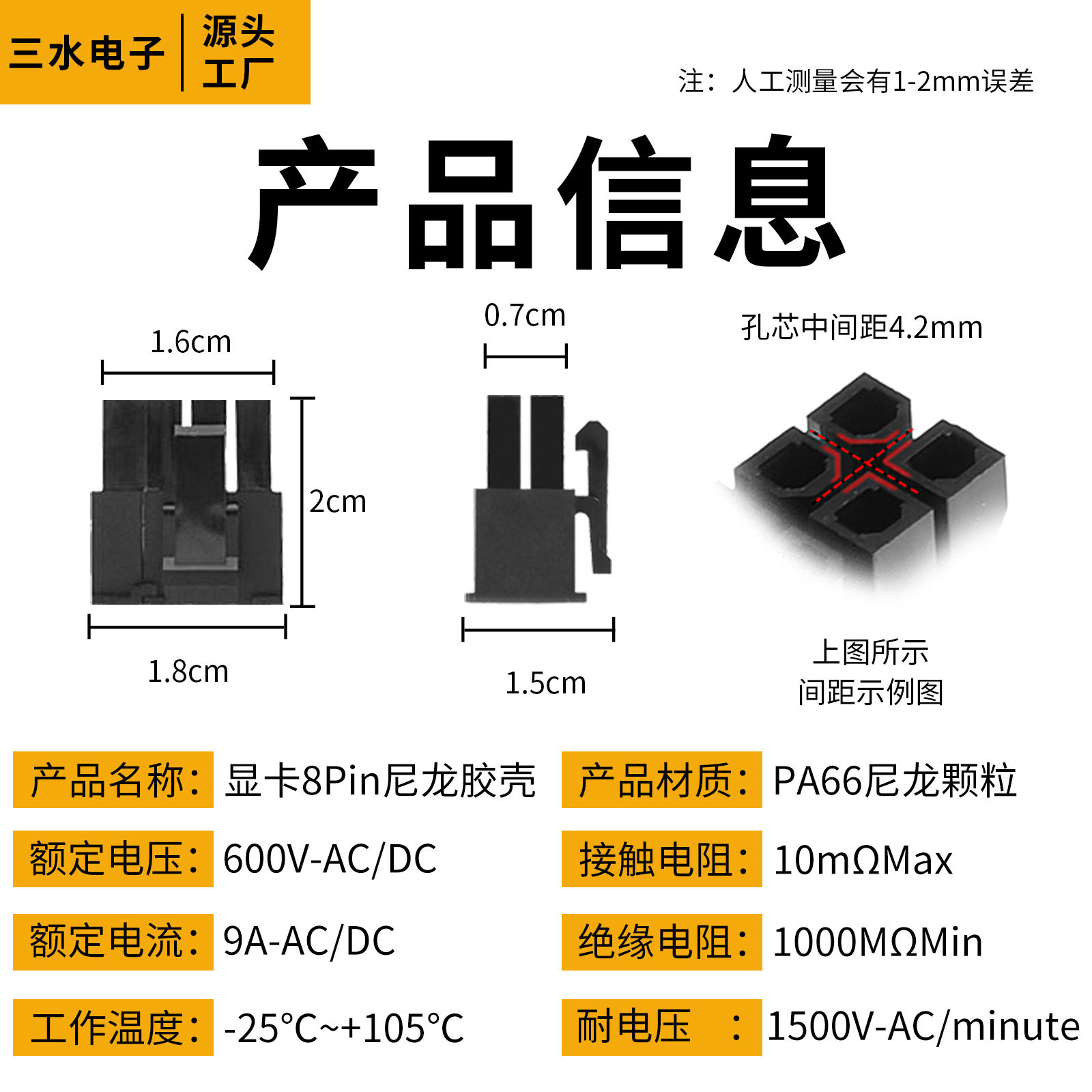 8-контактный разъем для видеокарты Taiwan JMT Jieshimei, интерфейс питания PCI-E для видеокарты, 8-контактный разъем питания для компьютера, пластиковый корпус