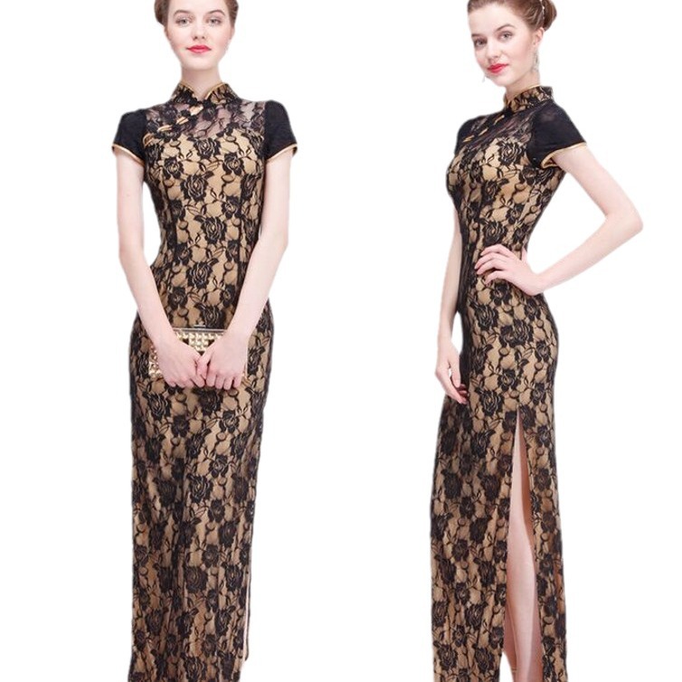 Сексуальный ретро двойной кружевной Чонсам соблазнительный длинный приталенный классический клубный бар чонсам