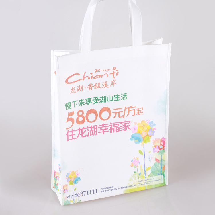 无纺布袋(又称为非织造布袋,英文:Nonwoven bags)是一种绿色产品,坚韧耐用、造型美观,透气性好,可重复使用、可洗涤,可丝印广告、使用期长,适宜任何公司、任何行业作为广告宣传、赠品之用。消费者在购物的同时又得到了一个精美的无纺布袋子,而商家以得到了无形的广告宣传,两全其美,这使无纺布袋在市场上越来越受欢迎。产品以无纺布为原料,它是新一代环保材料,具有防潮、透气、柔韧、质轻、不助燃、易分解、色彩丰富、价格低廉、可循环再用等特点。该材料置于室外90天可自然分解,置于室内使用寿命长达5年,从而不污染环境,被国际公认为保护地球生态的环保产品。复膜无纺布袋,产品采用流延方式,复合牢固,在复合过程中不粘胶,手感柔软,无塑料的感觉,适用于一次性医用中单,床单,隔离服,防护服,鞋套,等卫生防护用品的制作。