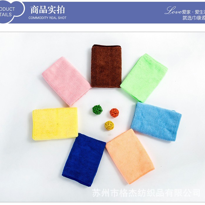 超细纤维毛巾是以纺织纤维为原料,一般以纯棉纱线为原料,少量有掺用混纺纱线或化学纤维纱的。用毛巾织机织制而成。按织造方式分有针织和梭织两类;按用途分有面巾、枕巾、浴巾、毛巾被、沙发巾等;此外,还有毛巾布,表面毛圈密集,手感柔软,吸水储水性强,耐磨、保暖性能好。常见的花色有全白毛巾、素色毛巾、彩条毛巾、印花毛巾、丝光毛巾、螺旋形毛巾、提花毛巾和提花印花毛巾等。用于洗擦可直接与人体接触的纺织品(如方巾、面巾、浴巾、毛巾被等)。