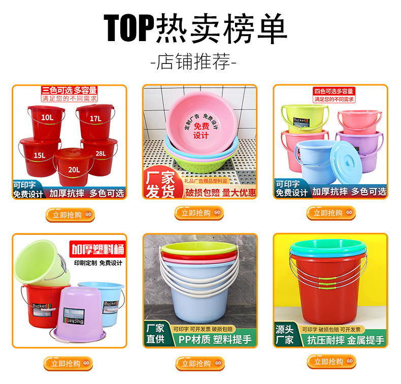 Пластиковое ведро от производителя, красное ведро, бытовое портативное многофункциональное ведро большой емкости для автомойки, ведро для хранения воды для стирки, утолщенное ведро