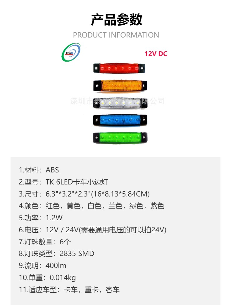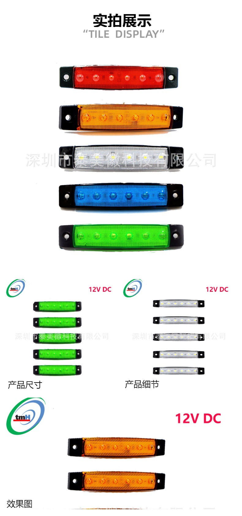 Трансграничный экспорт 5 цветов 6LED 12V/24V светодиодный двухсторонний клей небольшой длинный боковой свет грузовик боковой свет грузовик боковой свет
