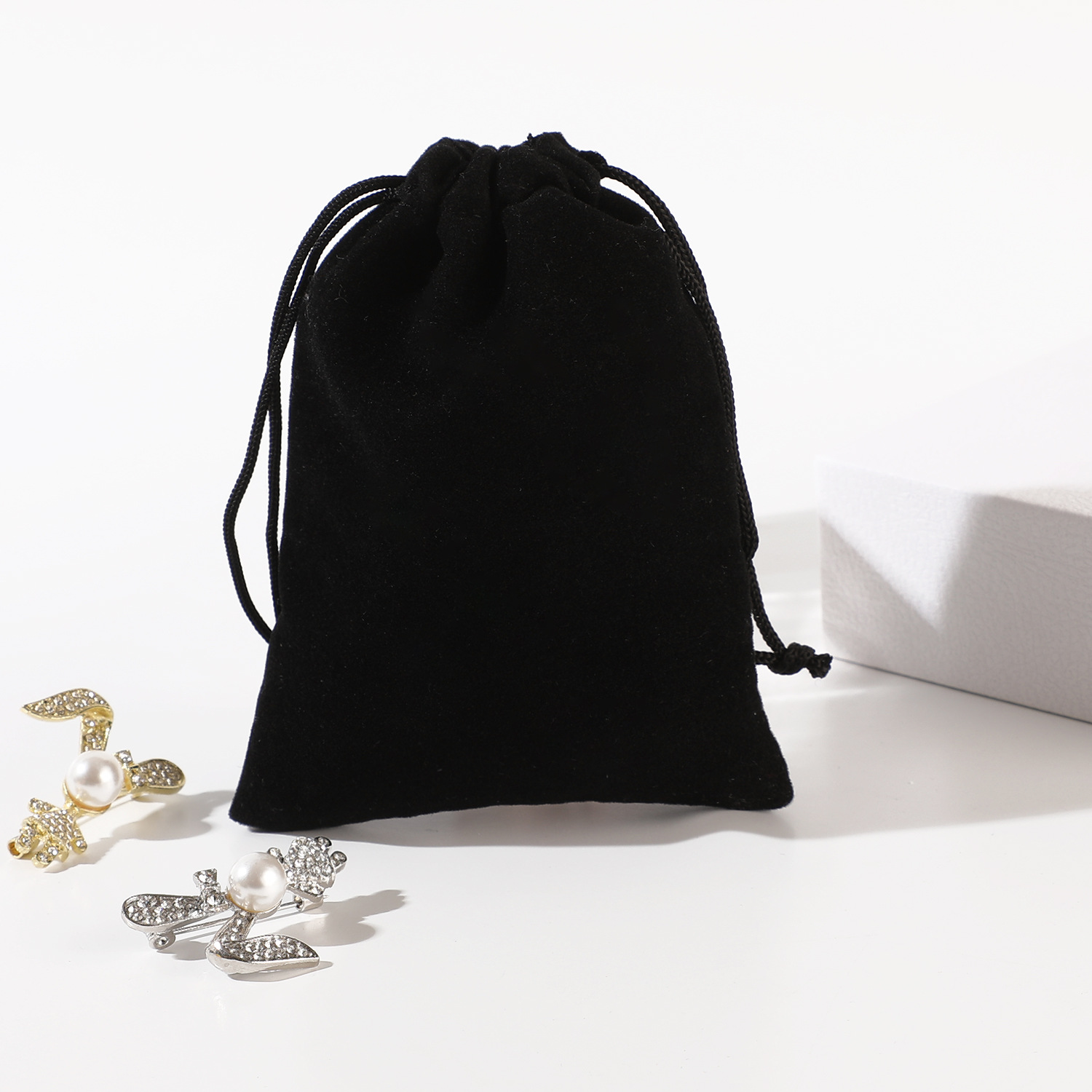 Фланелевая Сумка На складе оптом для хранения наушников небольшая тканевая сумка на шнурке для ювелирных изделий Черный фланелевый карман