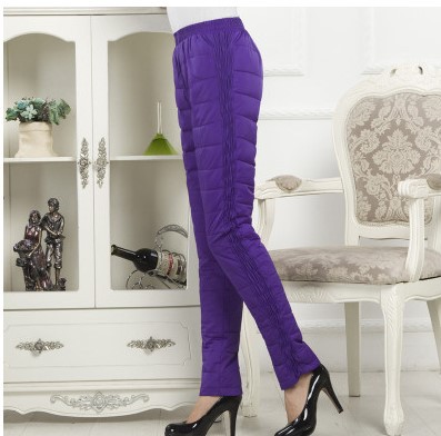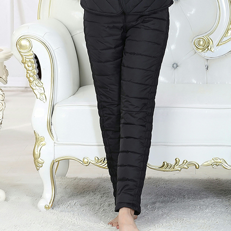 Зимние женские шелковые брюки из белого утиного пуха для женщин среднего и пожилого возраста для верхней одежды, утепленные, двусторонние, прямые, облегающие, теплые брюки с высокой талией.