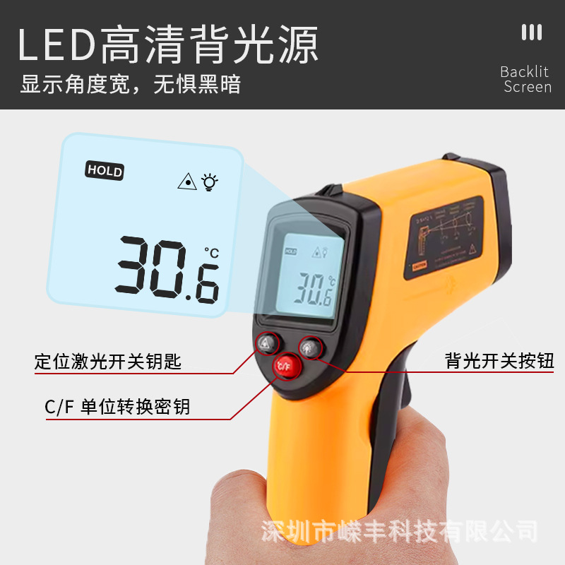 2、测温仪不能透过玻璃透明表面进行测定,它测定的将是玻璃的表面温度。