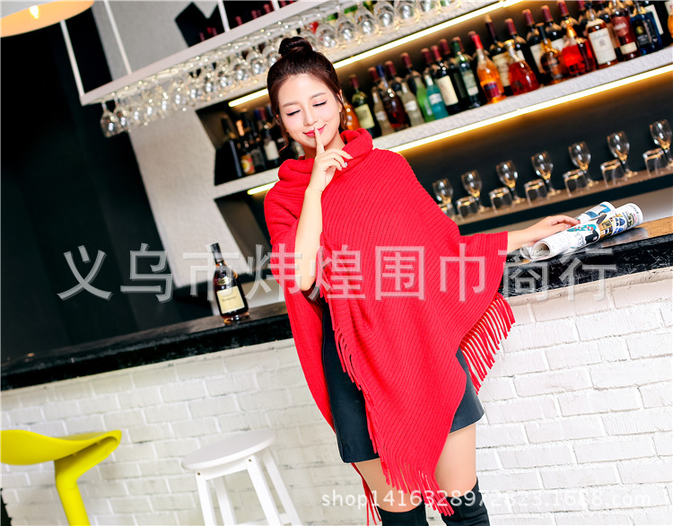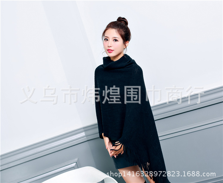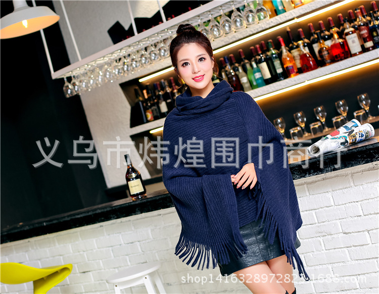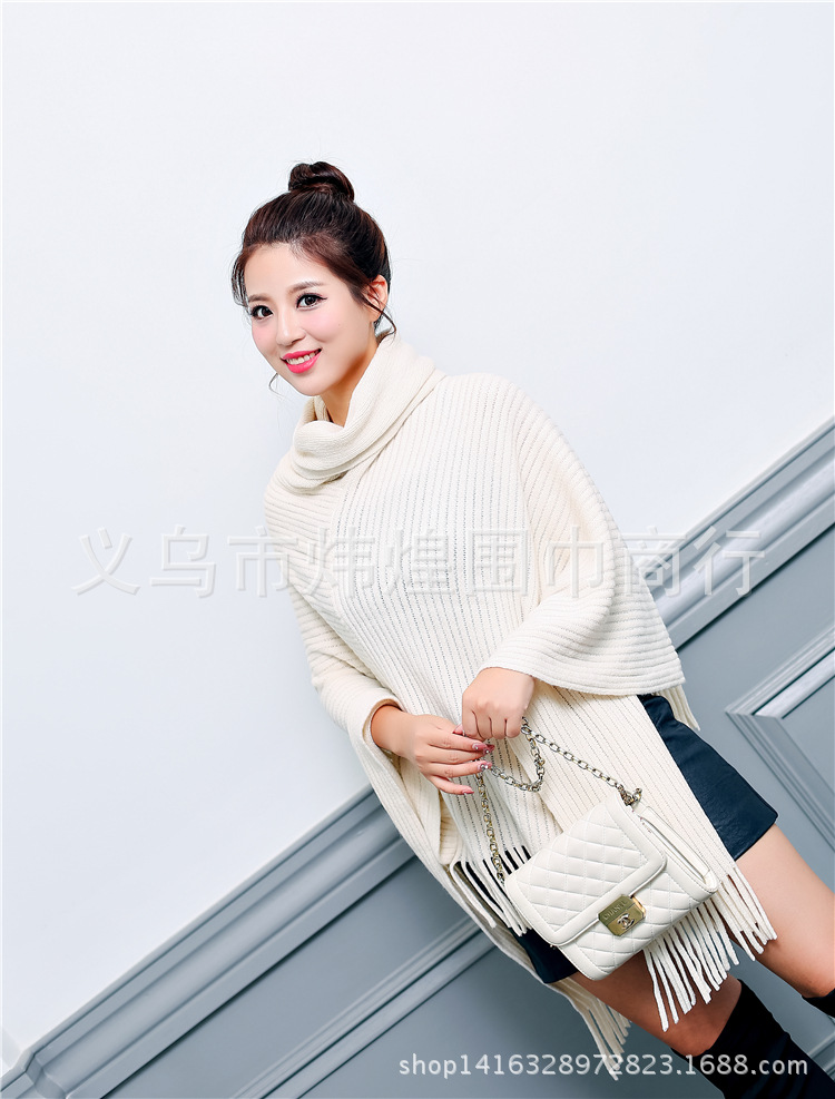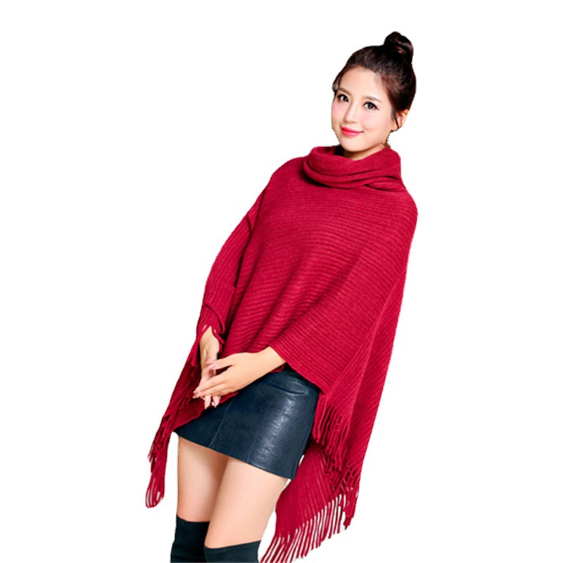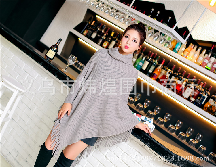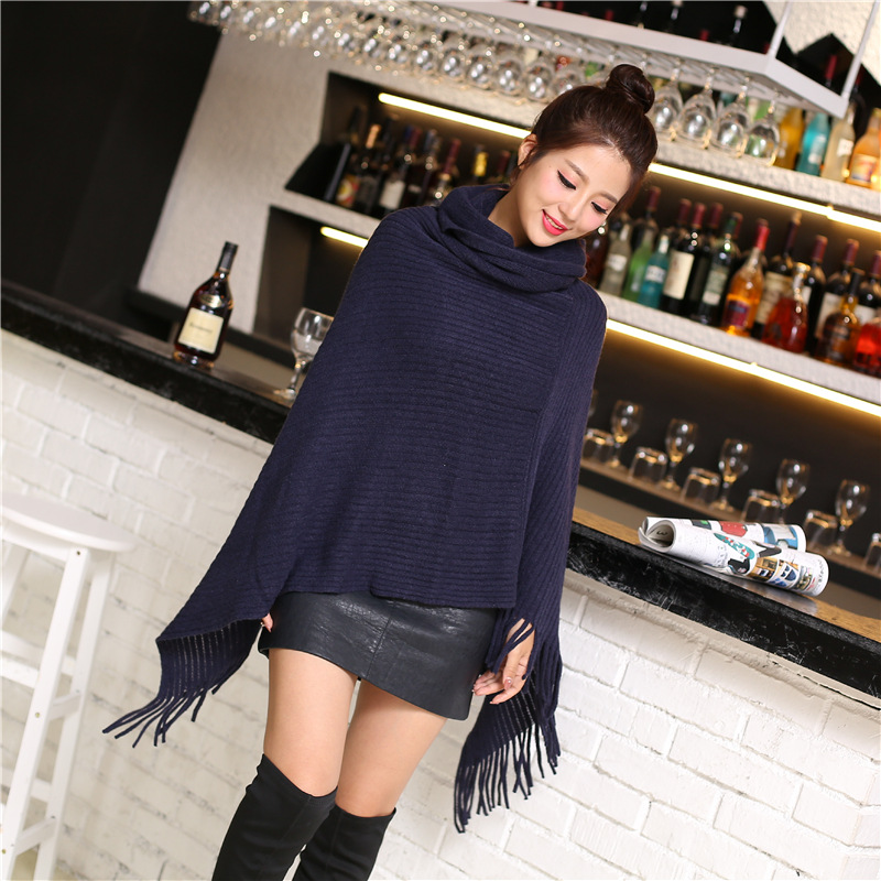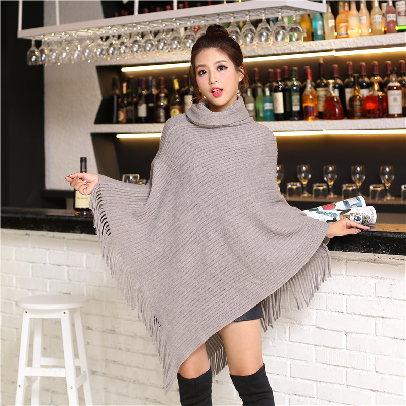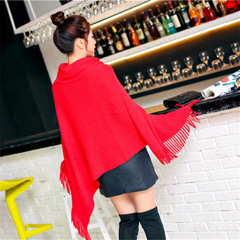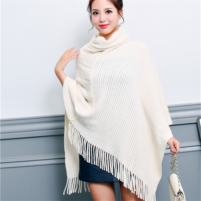 Осенне-зимнее Новое Женское пальто вязанное летучая мышь рубашка кисточка накидка шаль свитер пальто женский Водолазка Свитер однотонный