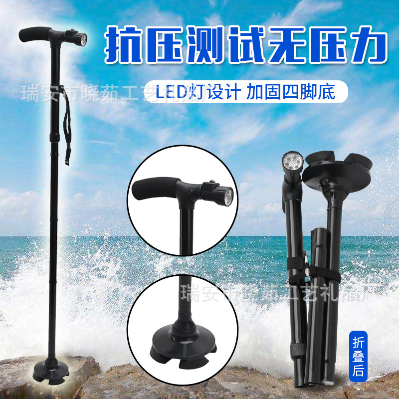 Противоскользящая трость, четырехногие костыли, телескопические складные легкие костыли из алюминиевого сплава, многофункциональные костыли с регулировкой освещения
