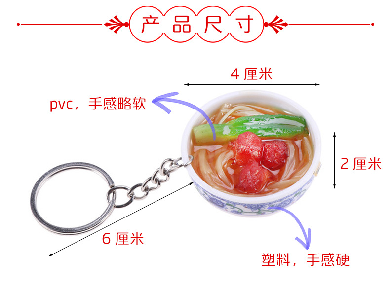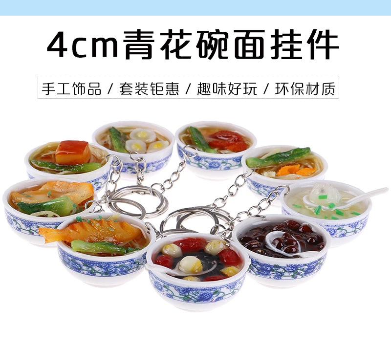 China Fengwang Red Simulation Продовольственная брелок Большая чаша 4 см модель чаши сине-белая фарфоровая чаша с лапшой оптом
